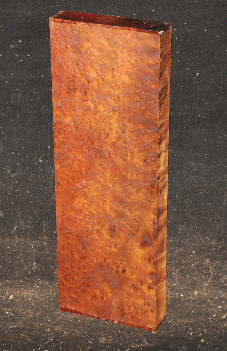 This rare burl is from S.E. Asia and is seldom seen on the world market. It is fine-grained and varies in color from a light reddish-brown to almost scarlet. It is easy to work and has a very pungent, spicy scent. For a burl it is remarkably stable. Green to partially air dried.