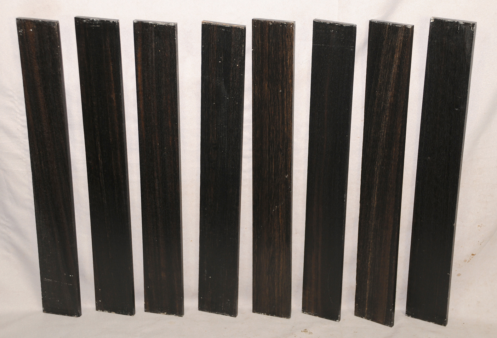 Sometimes called Gabon or Gaboon, this Ebony is sometimes jet black but oftentimes has grayish streaks that mostly disappear when finished or after the made object has been put into service. This Ebony has a marked resistance to checking that is characteristic of some of the Indian and Asian species. It has a wonderful texture and is easily carved, planed, turned, and milled. It is fairly fine-grained and takes a high polish. This Ebony usually originates in either Cameroon or Nigeria and the logs are rough hewn in the forest and oftentimes brought to the nearest road by human porters. With the disappearance of other species of black Ebony this species is fast becoming the Ebony of choice.