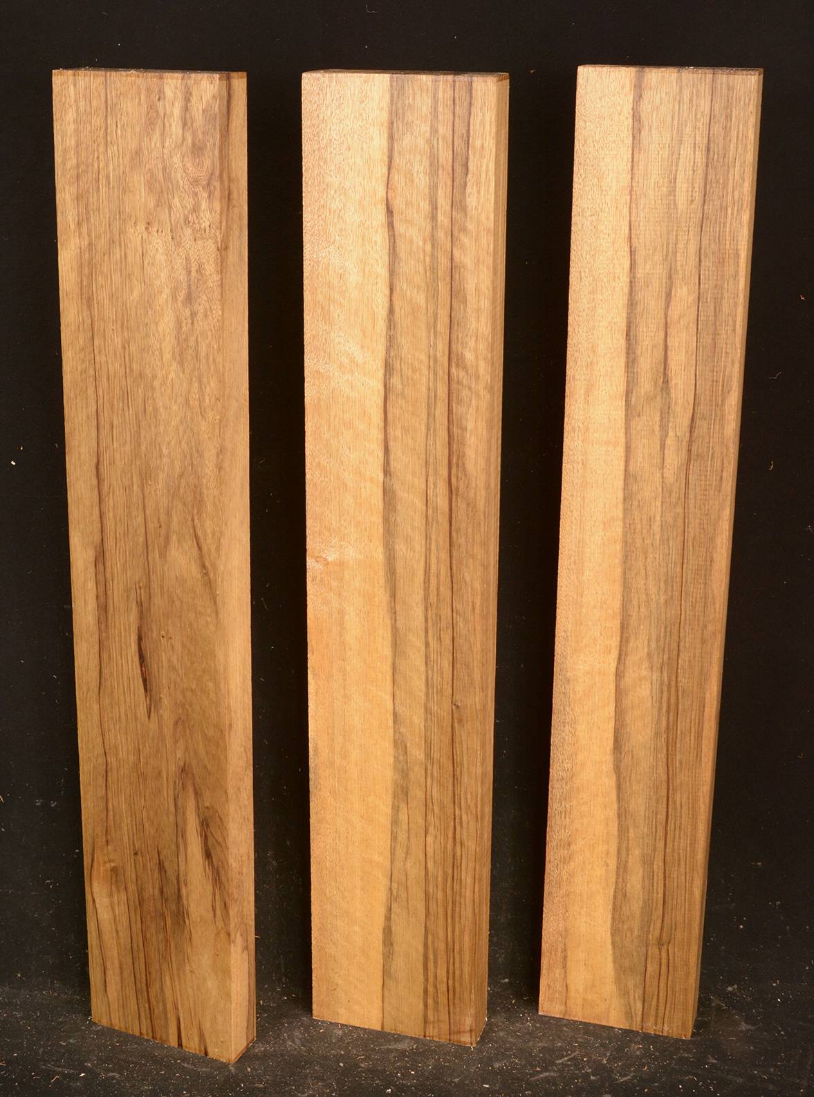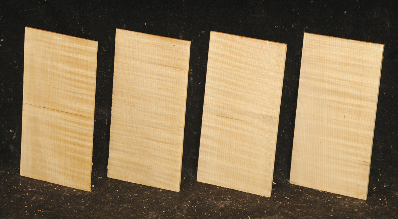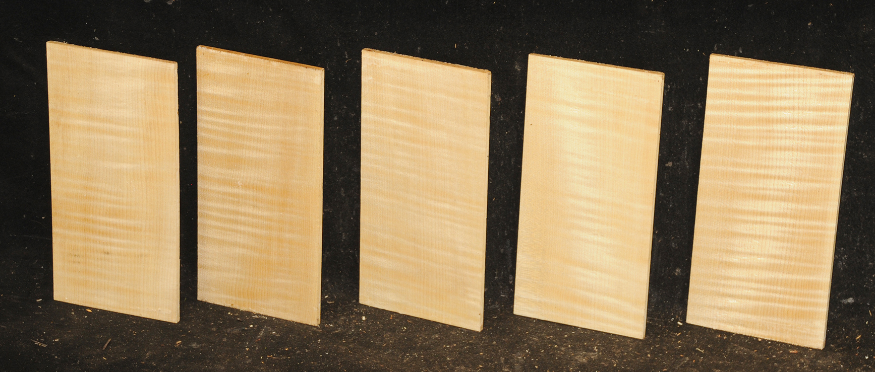 This European Maple is native to central Europe and west Asia. It is a tough, white or cream colored, fine-grained timber. It reminds me of vanilla ice cream because it is so even-colored. It works well in any grain direction. It is used for musical instruments, furniture, cabinetry, and because it is non-staining it is used for kitchen utensils, wooden spoons, rolling pins, and cutting boards. The figure is fiddleback on the quartersawn surface and more of a broken curl on the flatsawn surface. Select, quartersawn material is used for violin backs and sides and necks. Dry.