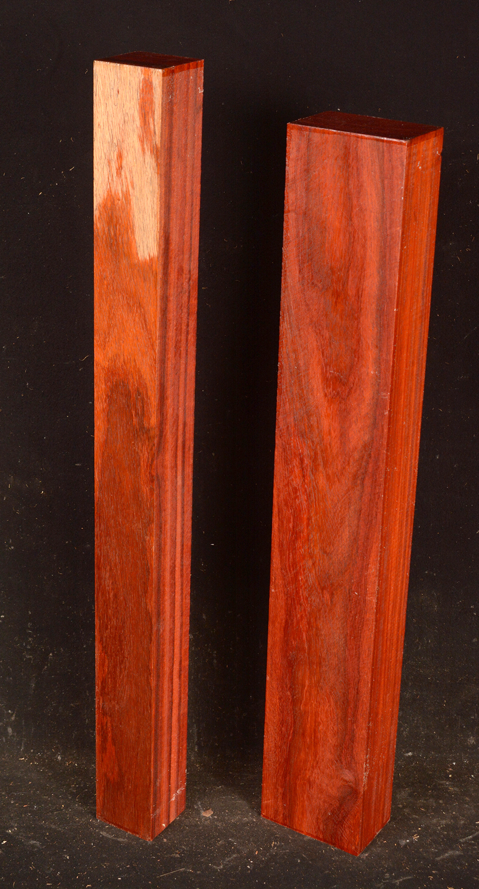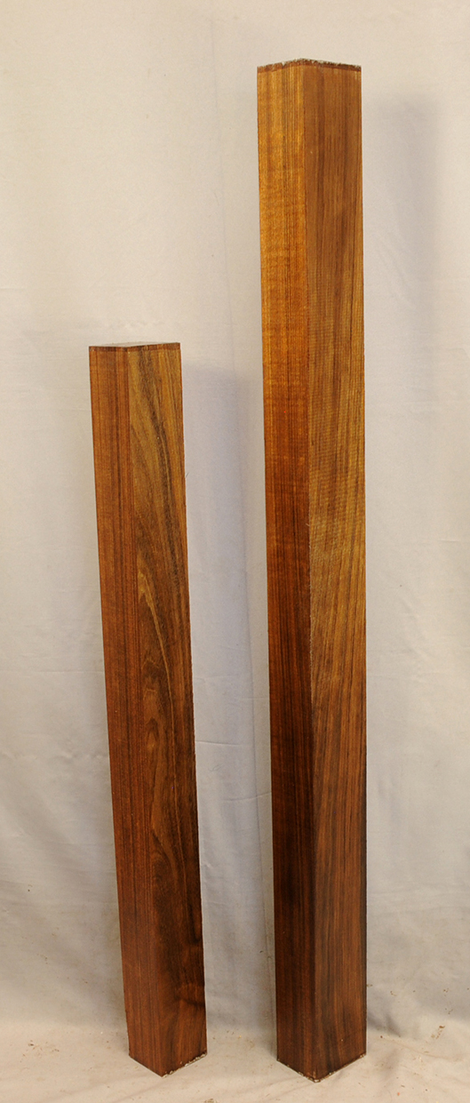 This Rosewood species has a reddish-brown to dark brown colored heartwood contrasting the almost white sapwood. The dust has a sweet odor. It is an excellent furniture/case works/jewelry box wood and even though it has a medium texture it does take a nice polish. We also offer it as a musical instrument wood (see guitar fingerboards and backs & sides elsewhere on the site). It has a very "crisp" tap tone with good sustain.