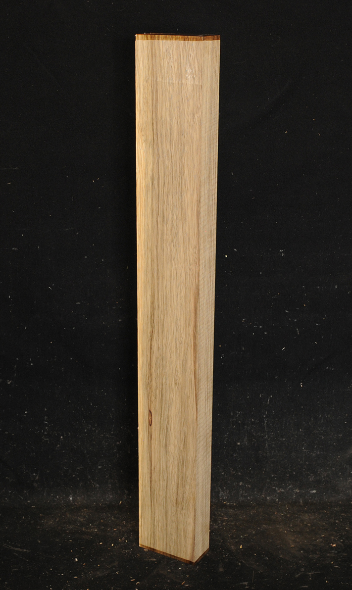 The heartwood is white or cream to light brown or reddish brown. Because of the generally small size of available logs, most sawmills produce flatsawn boards which will show a broken curl on the surface and a fiddleback curl on the quartersawn edge. Hard and heavy, 45 lbs/cu ft. Easy to work and takes a smooth polish. U.S.A.