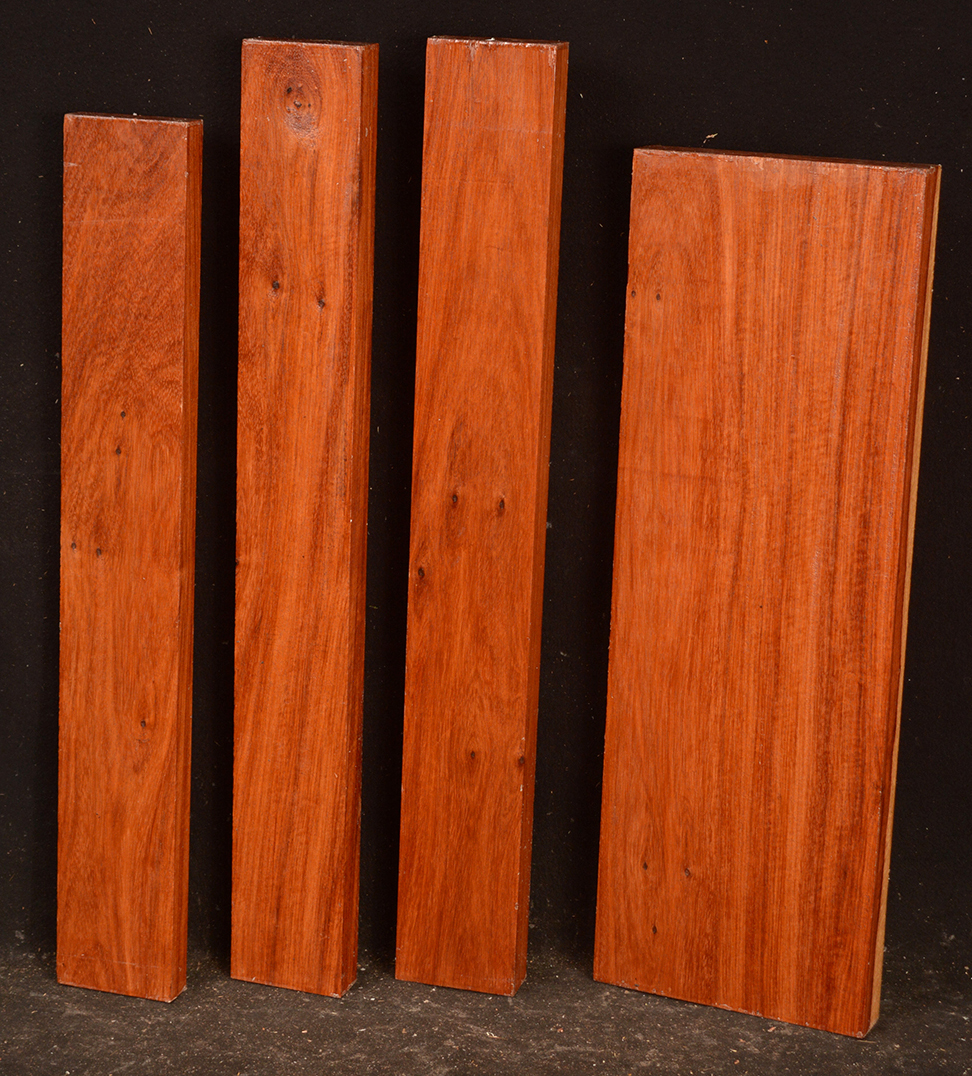 Called by some woodworkers African Rosewood, Bubinga is a deep, lustrous, brownish-red color with a fine, darker striping. The figure makes the wood doubly beautiful. It is very hard and heavy and takes a glassy, smooth finish.