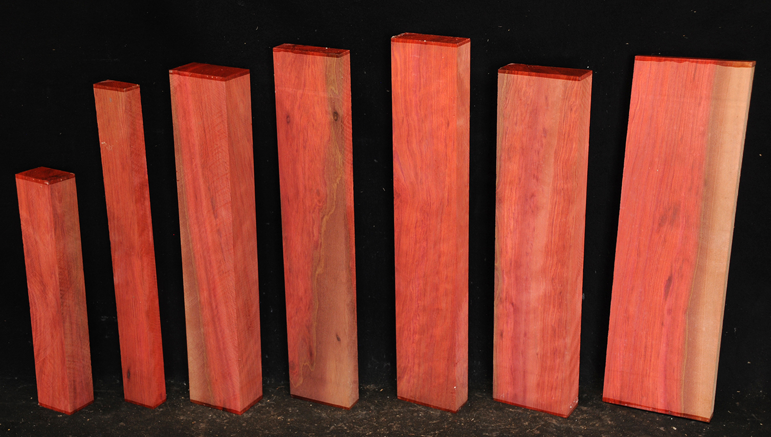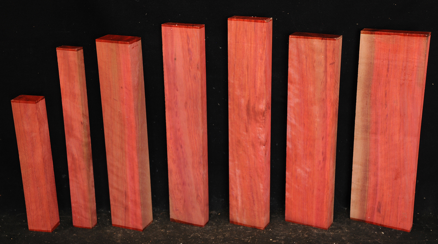 Called by some woodworkers African Rosewood, Bubinga is a deep, lustrous, brownish-red color with a fine, darker striping. The figure makes the wood doubly beautiful. It is very hard and heavy and takes a glassy, smooth finish.