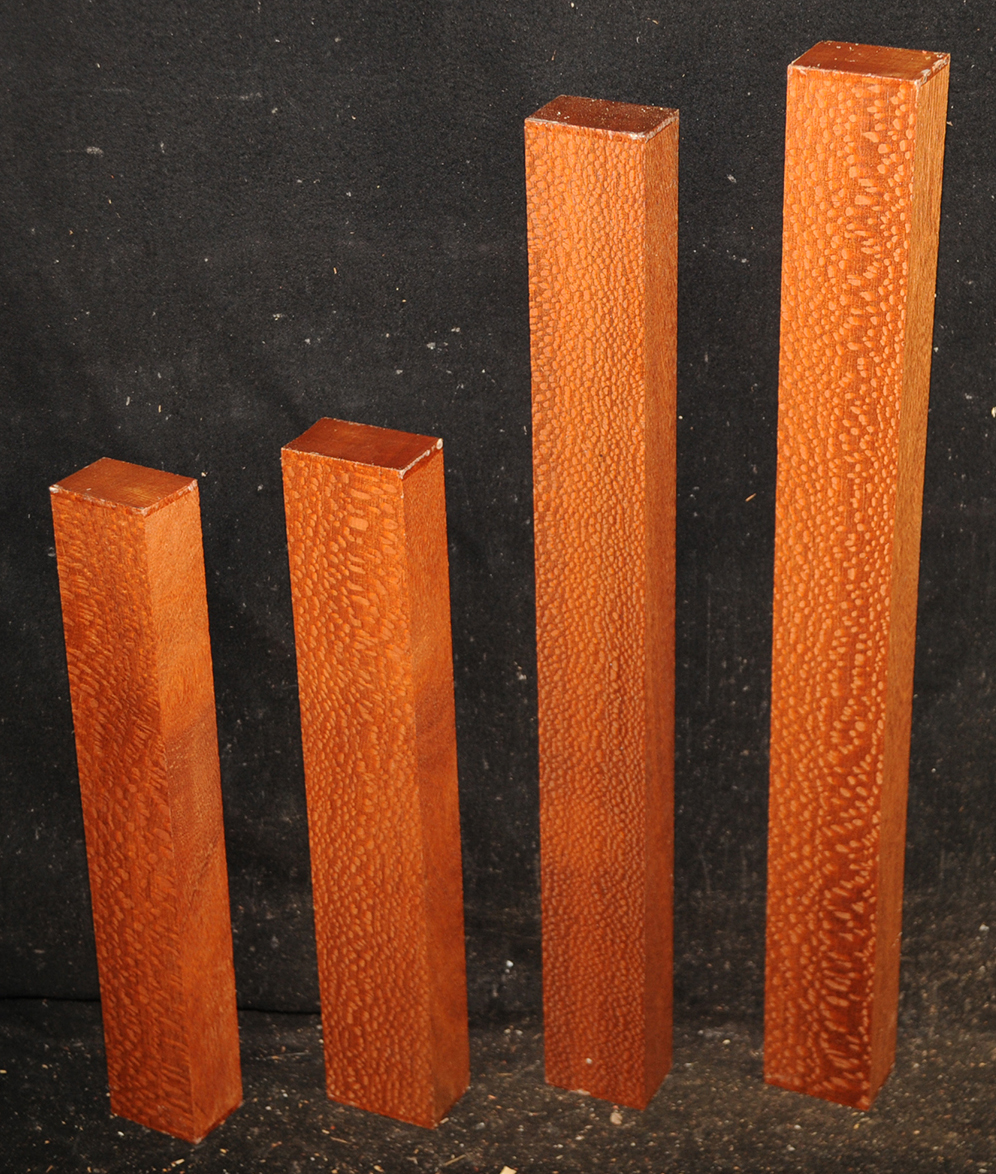 Called by some woodworkers African Rosewood, Bubinga is a deep, lustrous, brownish-red color with a fine, darker striping. The figure makes the wood doubly beautiful. It is very hard and heavy and takes a glassy, smooth finish.