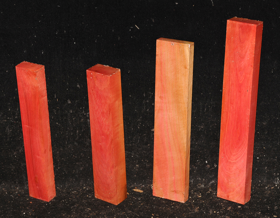 A fairly rare wood from Southern Africa ranging in color from light pink to watermelon red. At one time it was described as being "rarer than diamonds". It is very dense, hard and heavy and takes a very high polish. Beautiful for turnery, inlays and other precious items.