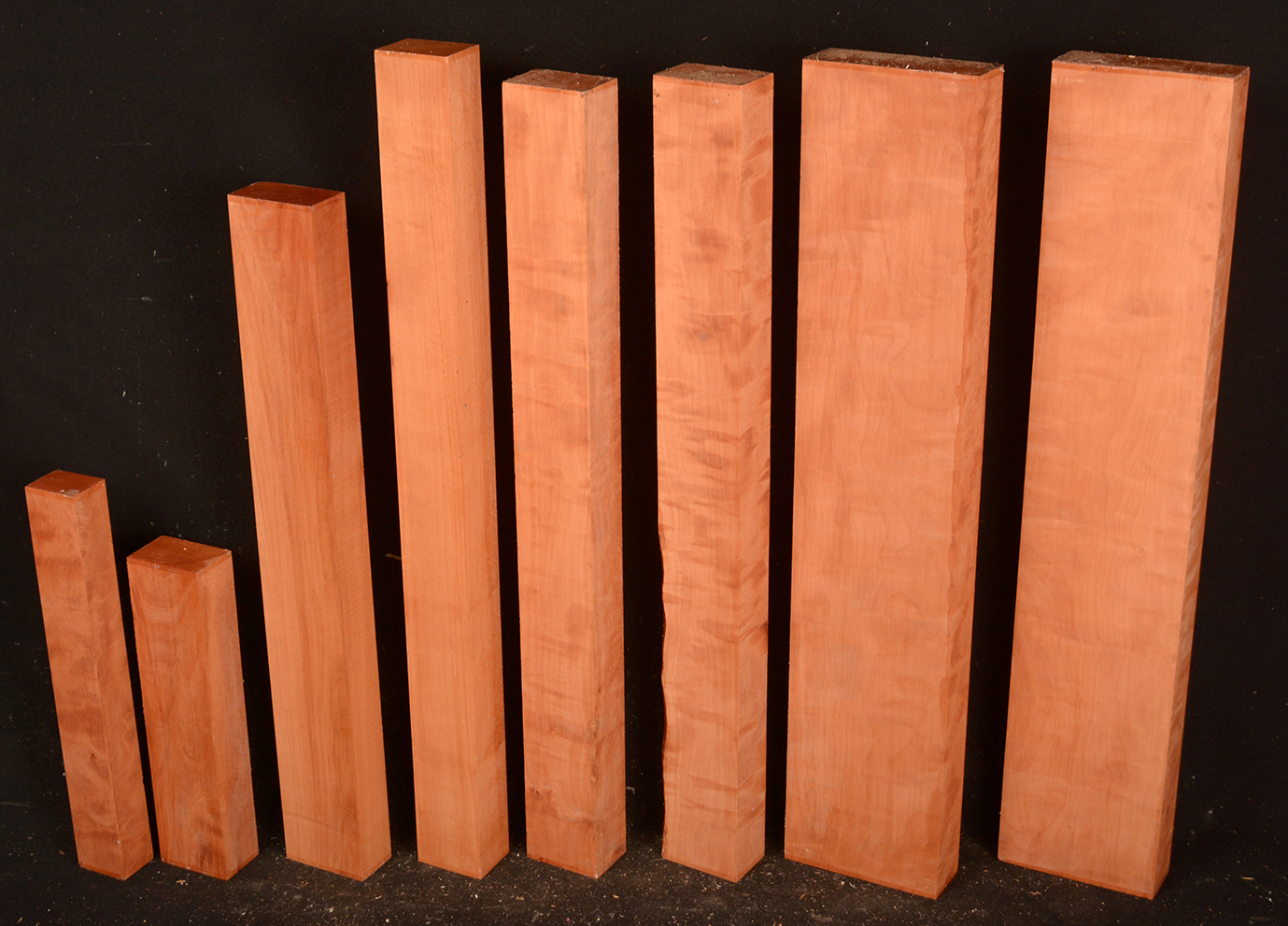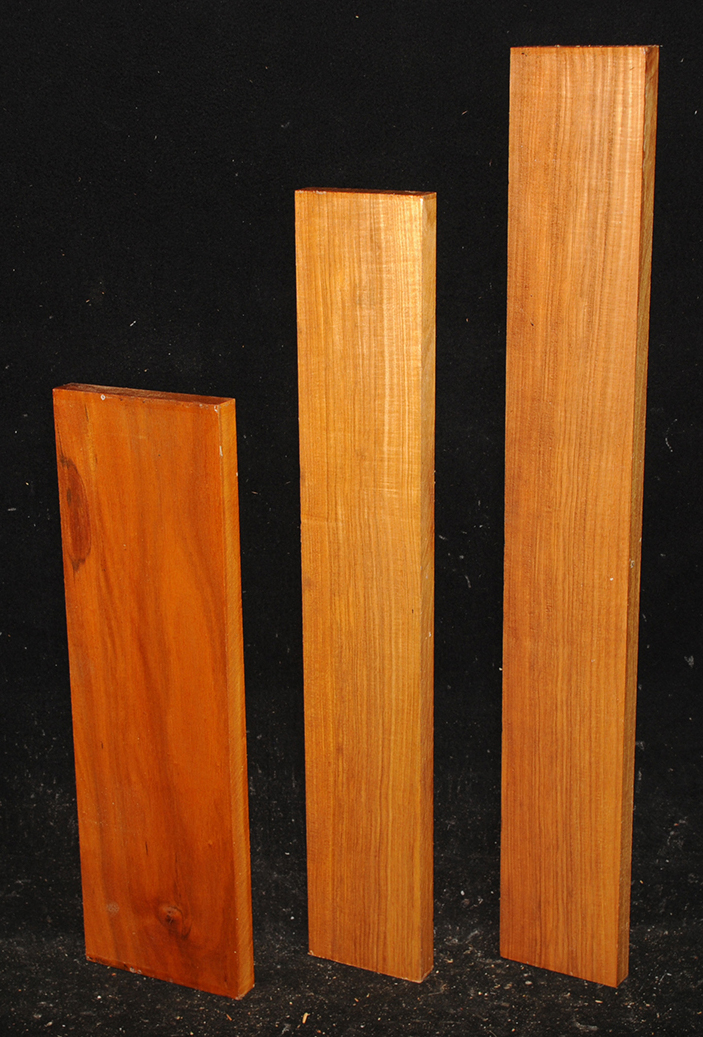 This brick-red colored West African hardwood was once one of the more common imported hardwoods but has become increasingly scarce in the last couple of years. It is easy to work, takes a nice polish and is dimensionally stable.