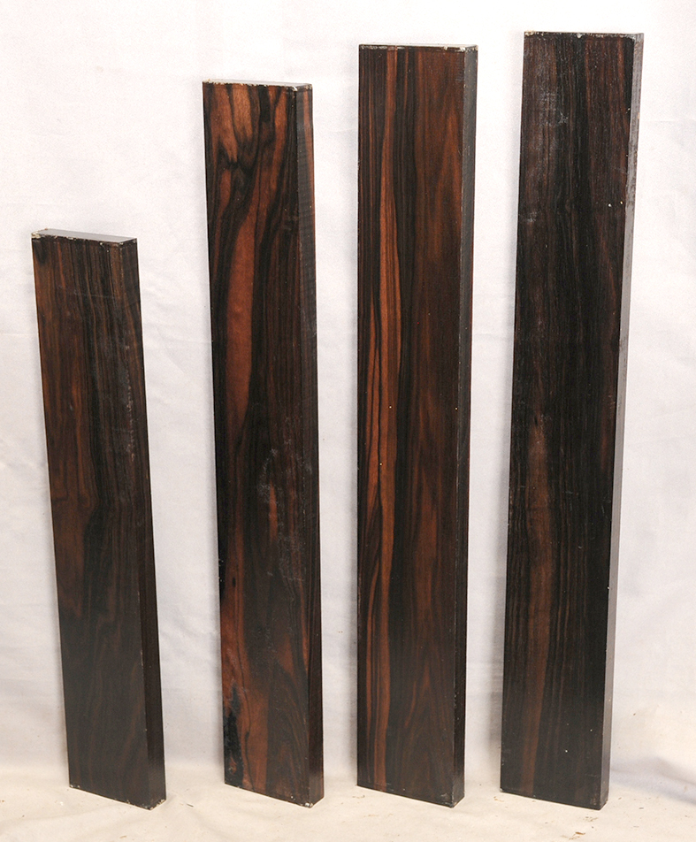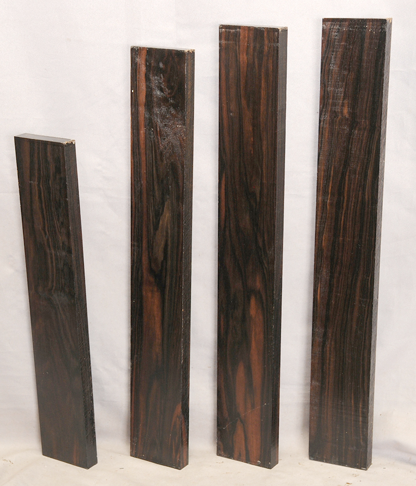 The heartwood is purplish to brownish-black with dark gray streaks giving an overall impression of being black. Lustrous with an attractive inner chatoyance. Very hard, heavy, close-grained, and virtually free from pores. Its stability and lovely tonal qualities make it an excellent instrument wood.