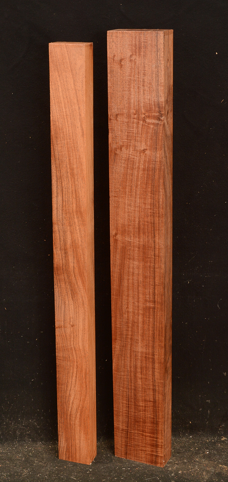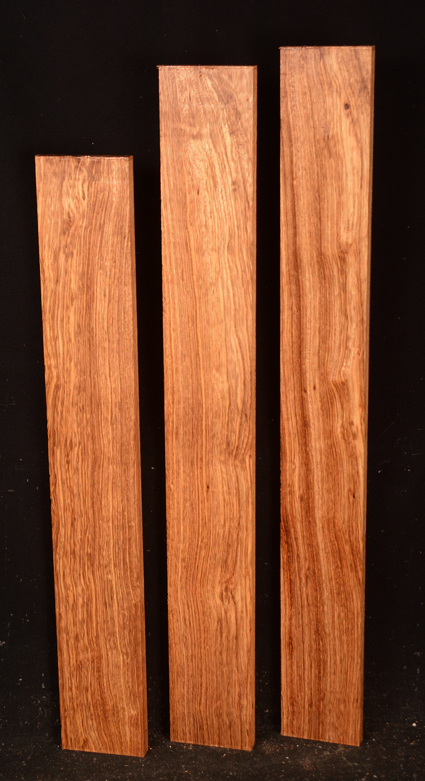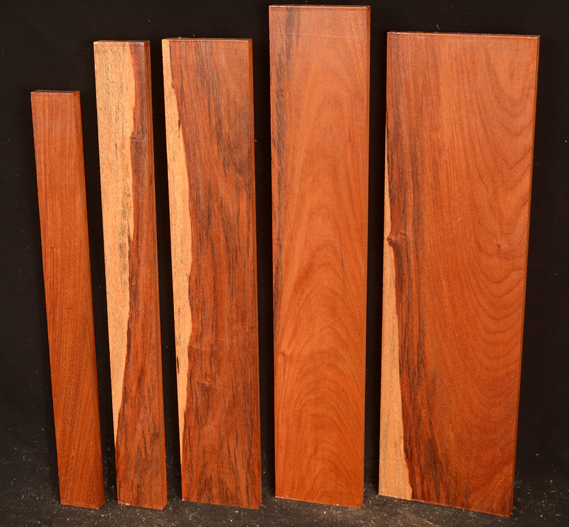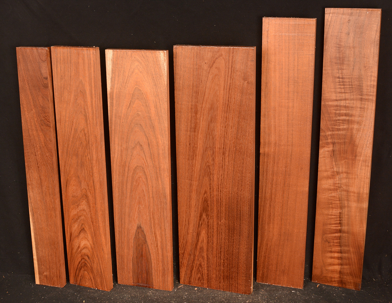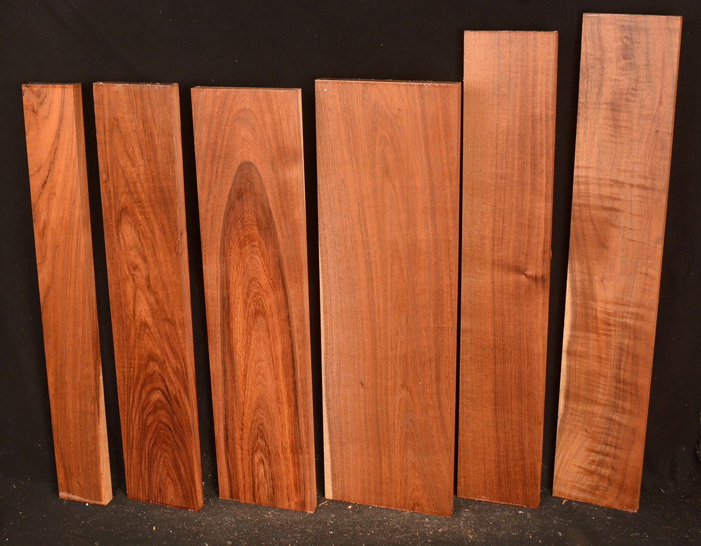 This Rosewood species has a reddish-brown to dark brown colored heartwood contrasting the almost white sapwood. The dust has a sweet odor. It is an excellent furniture/case works/jewelry box wood and even though it has a medium texture it does take a nice polish. We also offer it as a musical instrument wood (see guitar fingerboards and backs & sides elsewhere on the site). It has a very "crisp" tap tone with good sustain.