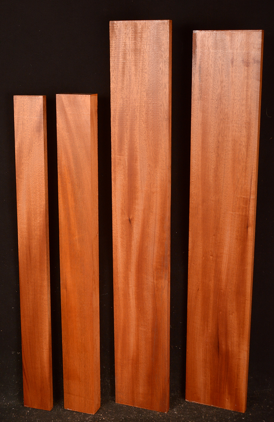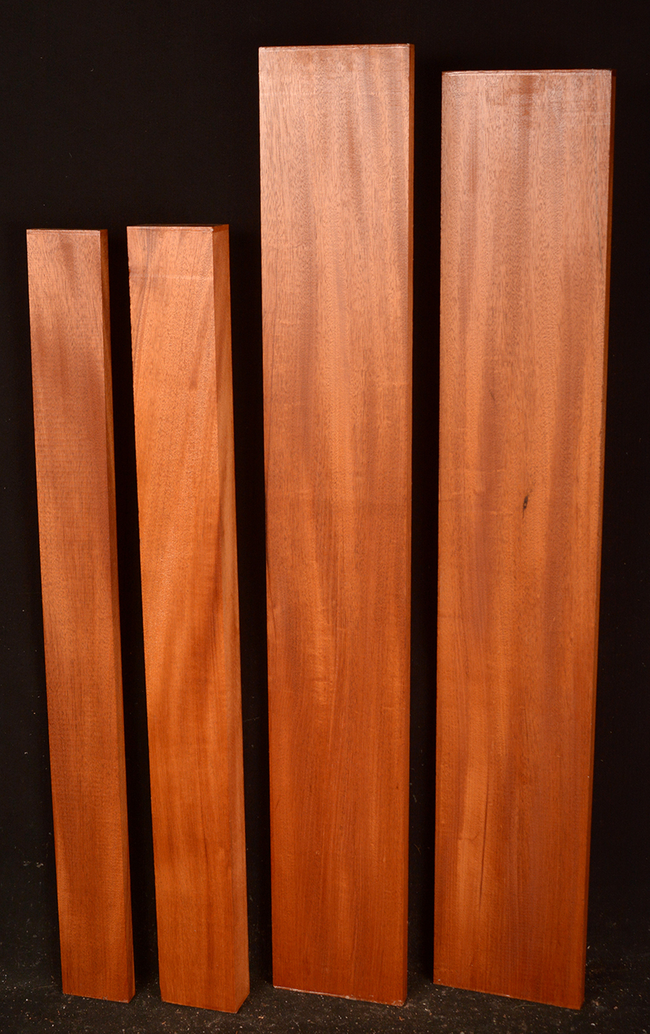 Also called Acajou, Tropical American Mahogany, and Honduras Mahogany. This medium to large tree occurs throughout Central and South America. Related to Cuban Mahogany (Swietenia mahogani) and Pacific Coast Mahogany (Swietenia humilis). It produces one of the classic furniture and cabinetmaking woods. The heartwood varies from a light reddish-brown to a rich, dark red. Generally straight grained and exceptionally stable, it is easy to machine, hand plane, sand and finish. Occasional logs produce several figures, curly, quilted, and the rare plum pudding figure which looks like large drips running down the board. Used in fine furniture and joinery, boat building, and in the guitar industry for acoustic sets and necks.