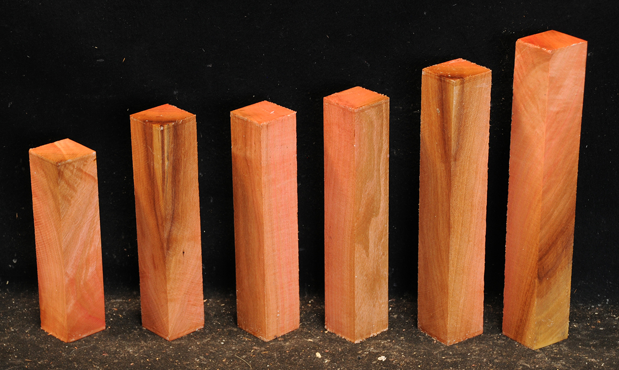 A fairly rare wood from Southern Africa ranging in color from light pink to watermelon red. At one time it was described as being "rarer than diamonds". It is very dense, hard and heavy and takes a very high polish. Beautiful for turnery, inlays and other precious items.