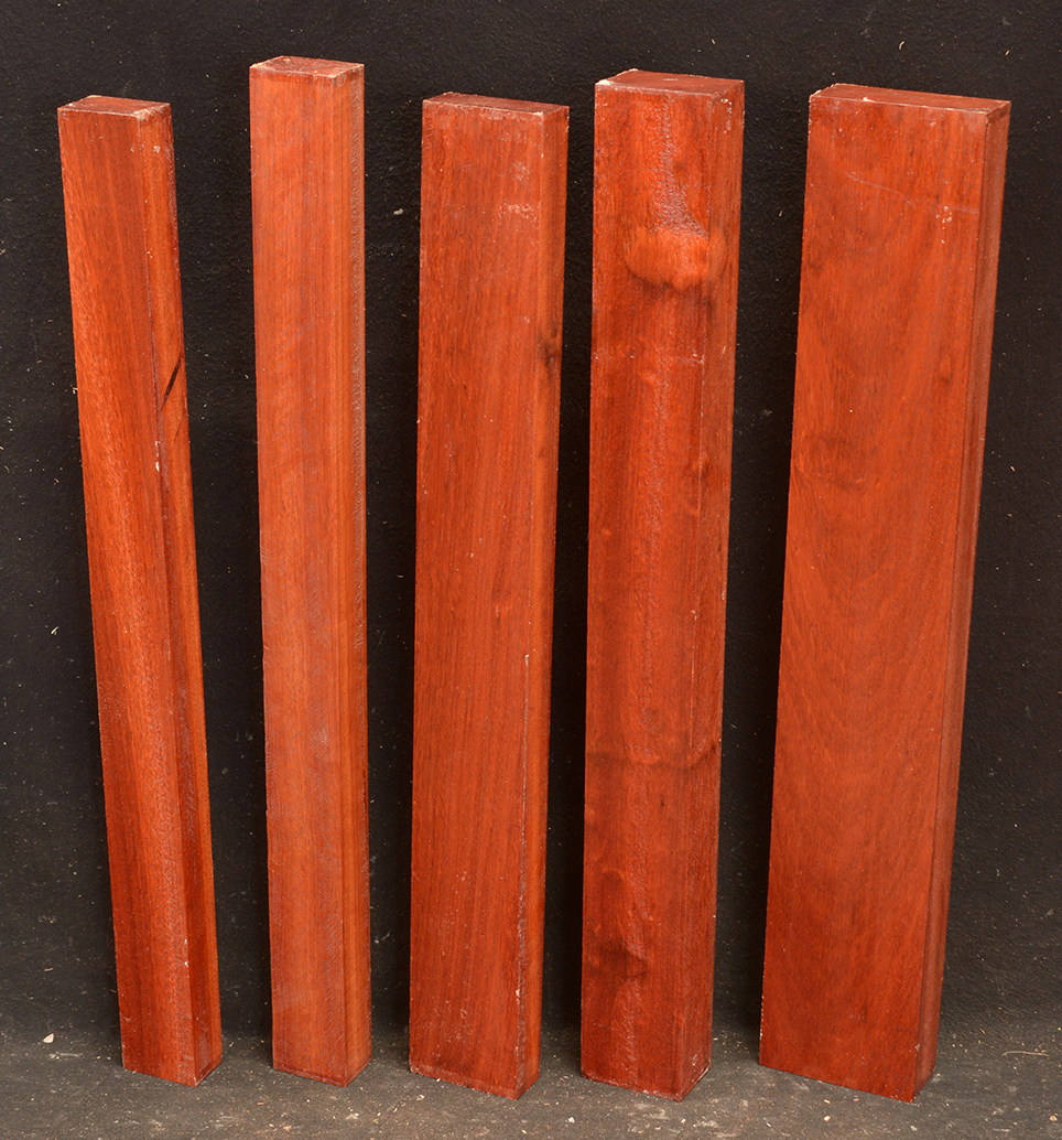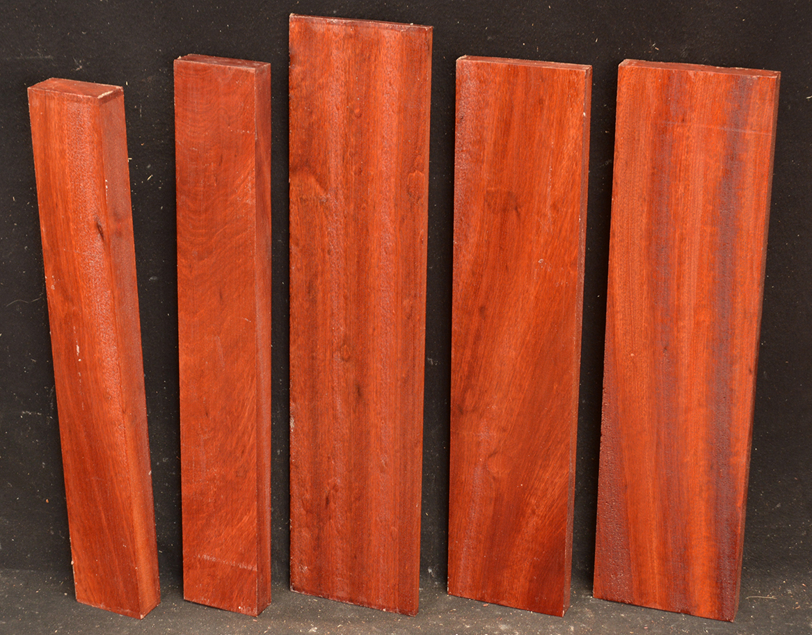 Also called Satine, Cacique, and Cardinalwood. The heartwood is a rich strawberry red, in sharp contrast to the light colored sapwood. Takes a high, lustrous finish. Kiln-dried.