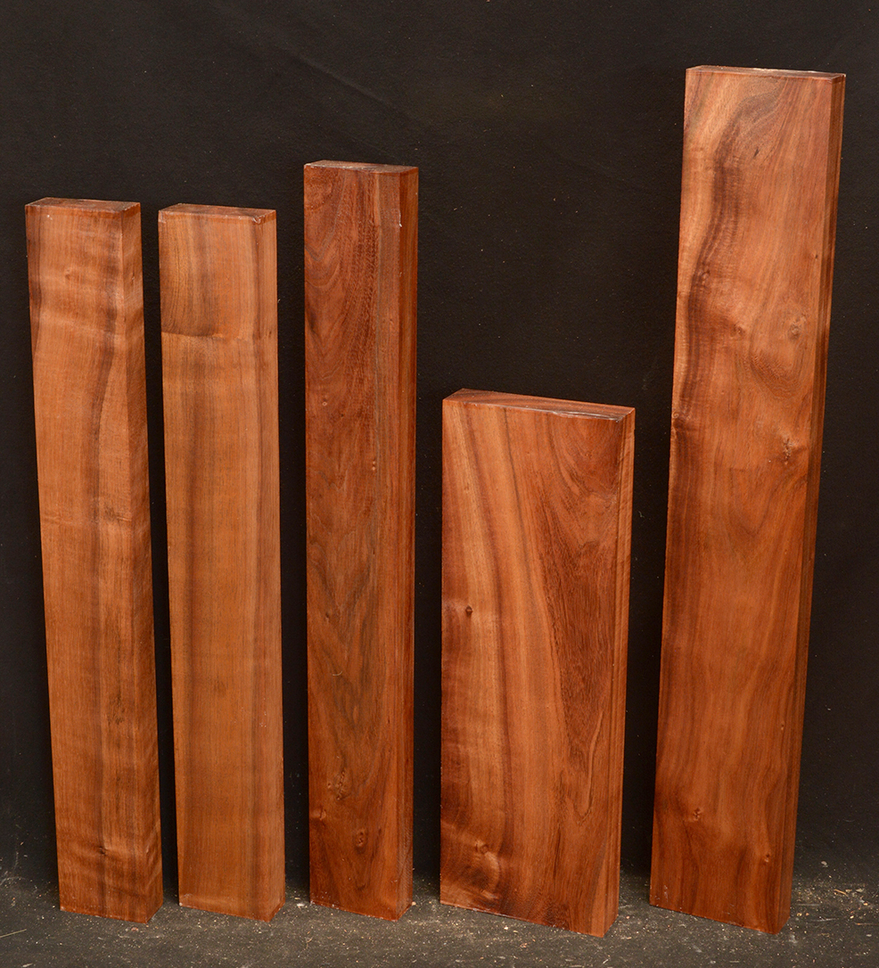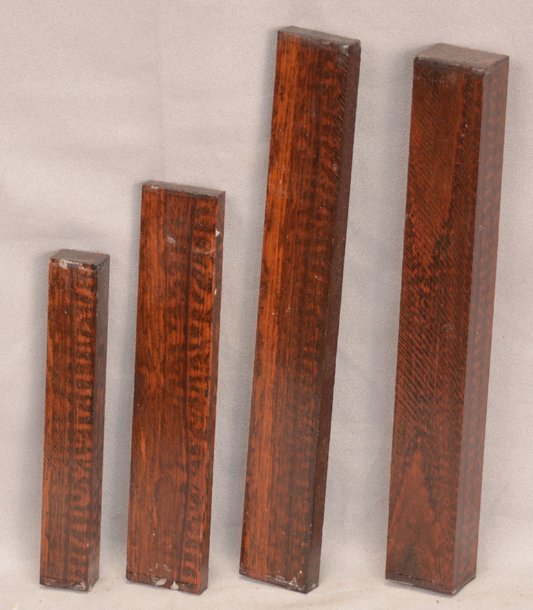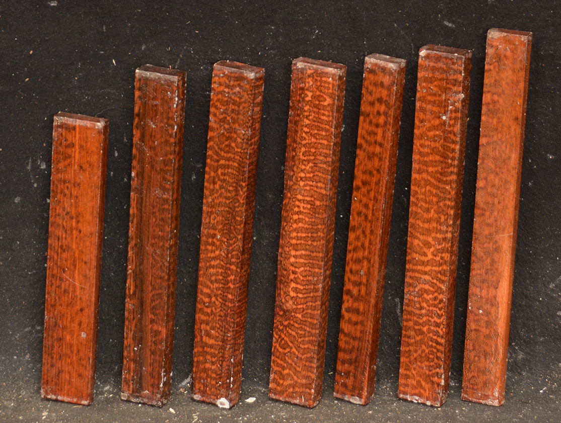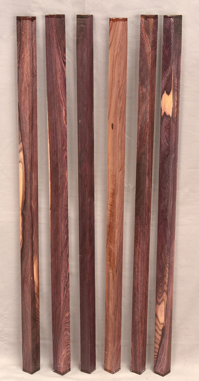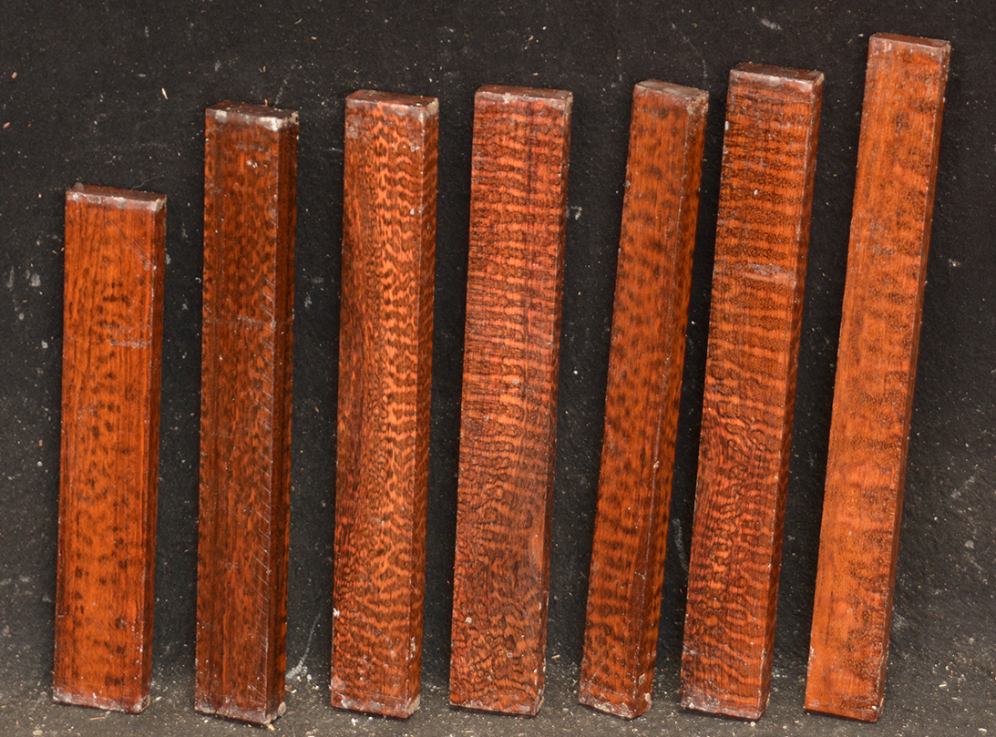 C & D are Figured Macassar Ebony, 5 pieces each.