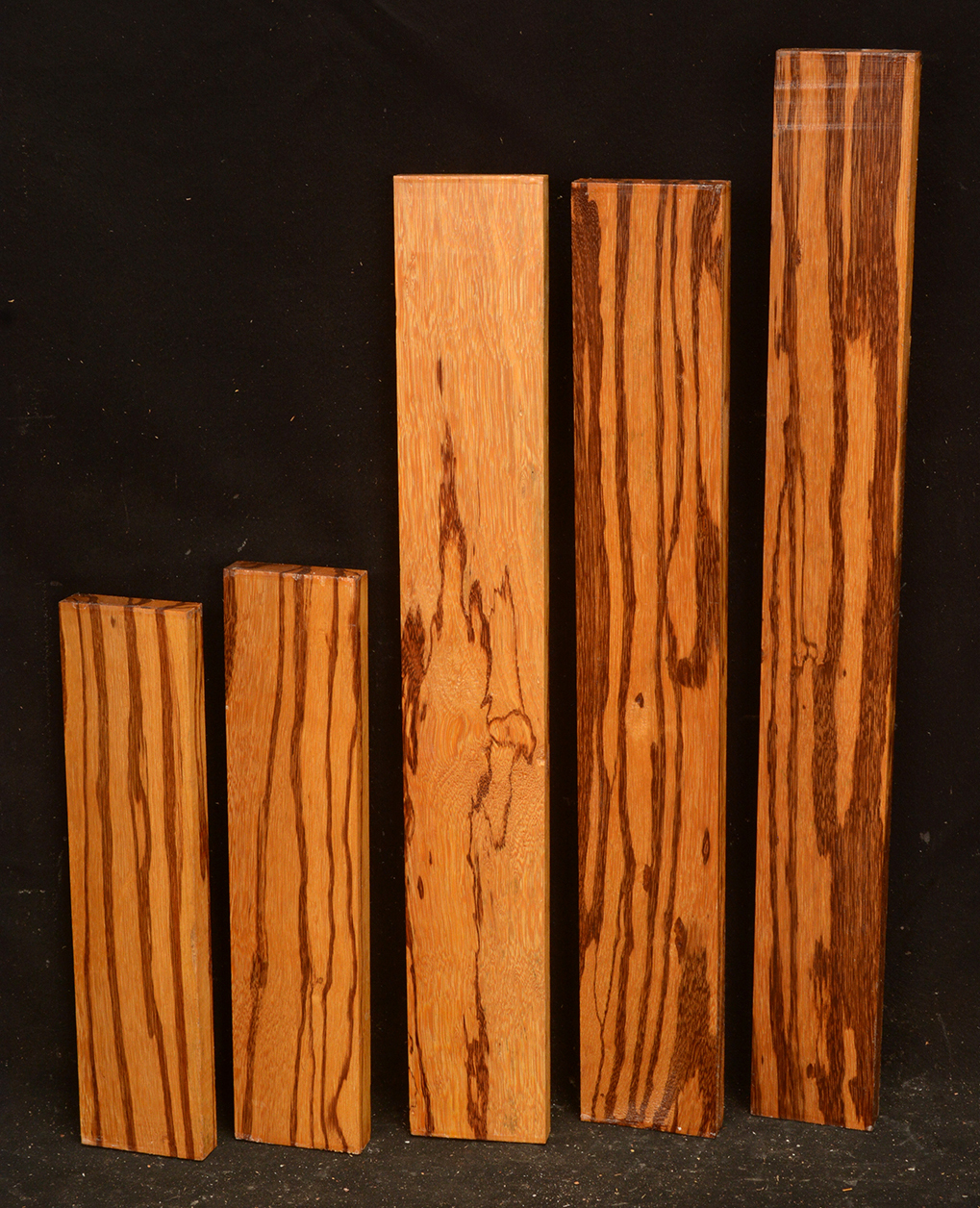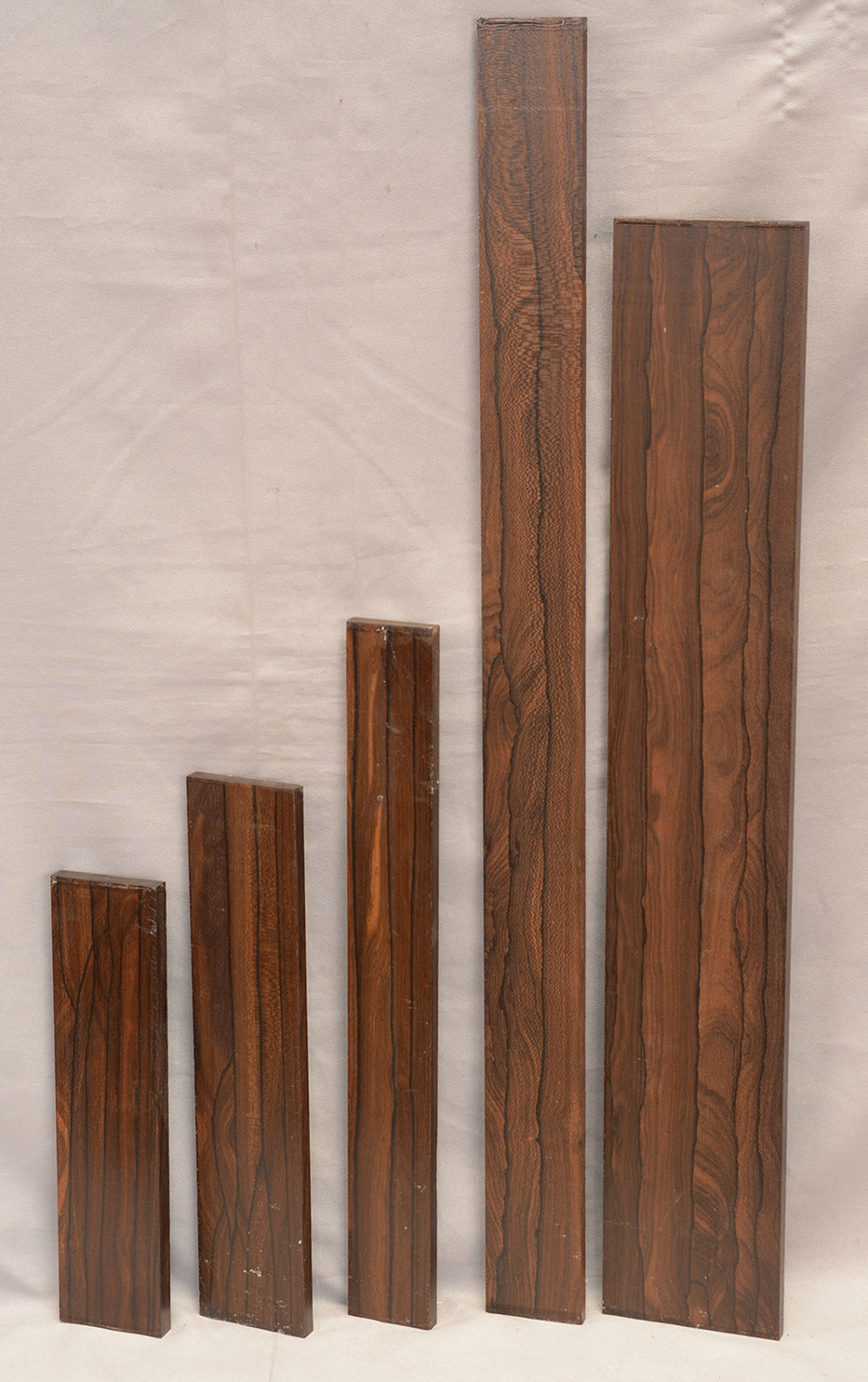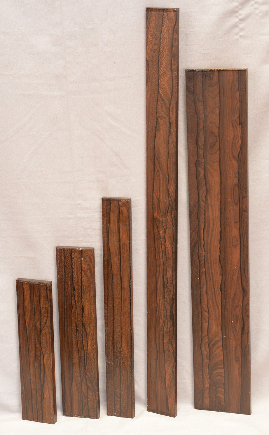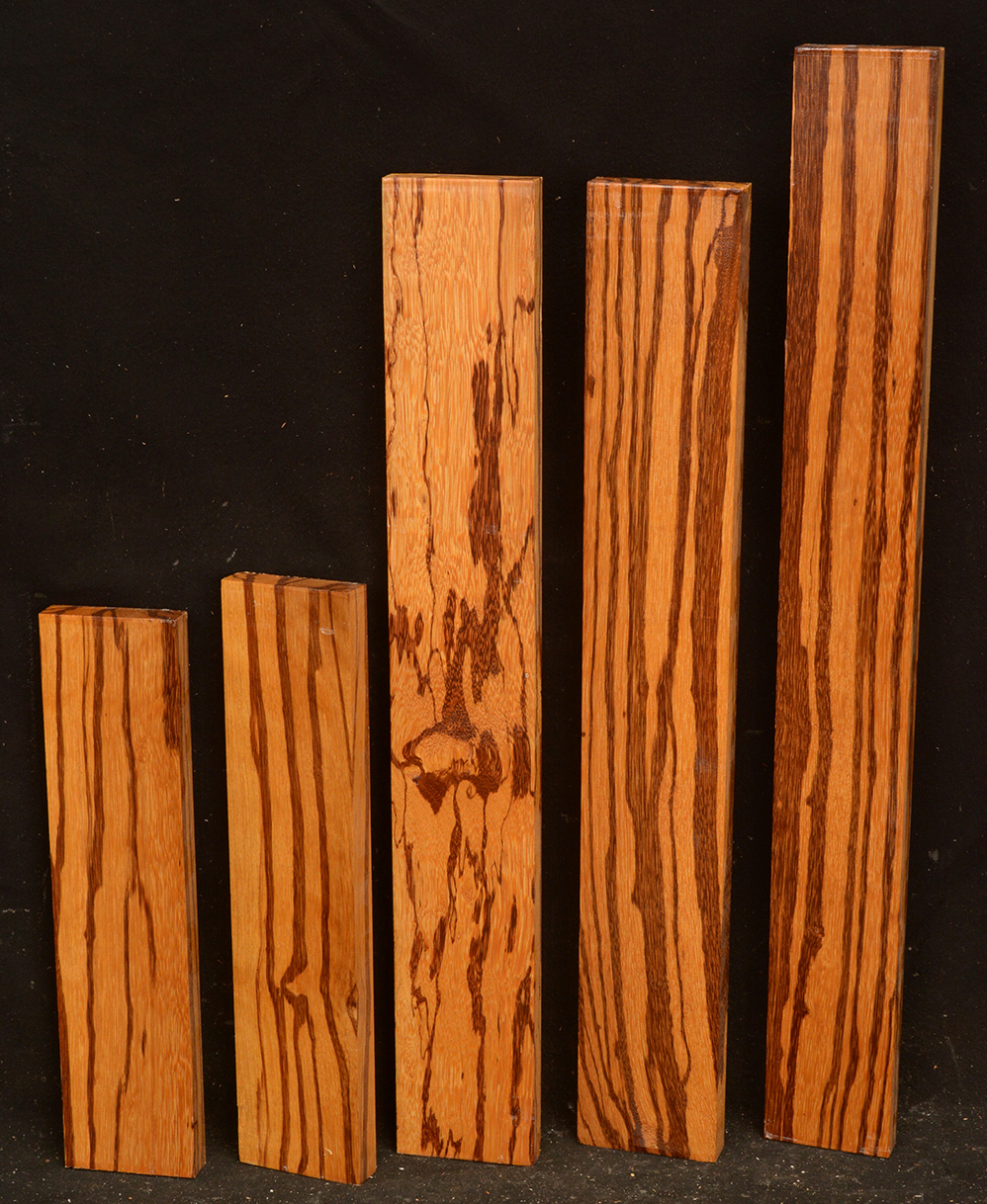 C & D are Figured Macassar Ebony, 5 pieces each.