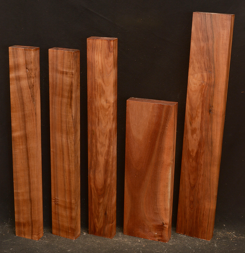 This species is found almost exclusively in the Hawaiian Islands. It ranges in color from a pale brown to a reddish brown to a very dark, almost chocolate brown. It has a texture similar to Walnut but is easier to work. Can be highly chatoyant or lustrous. Highly sought after for use in musical instruments, especially guitars and ukuleles. Koa is becoming rare.