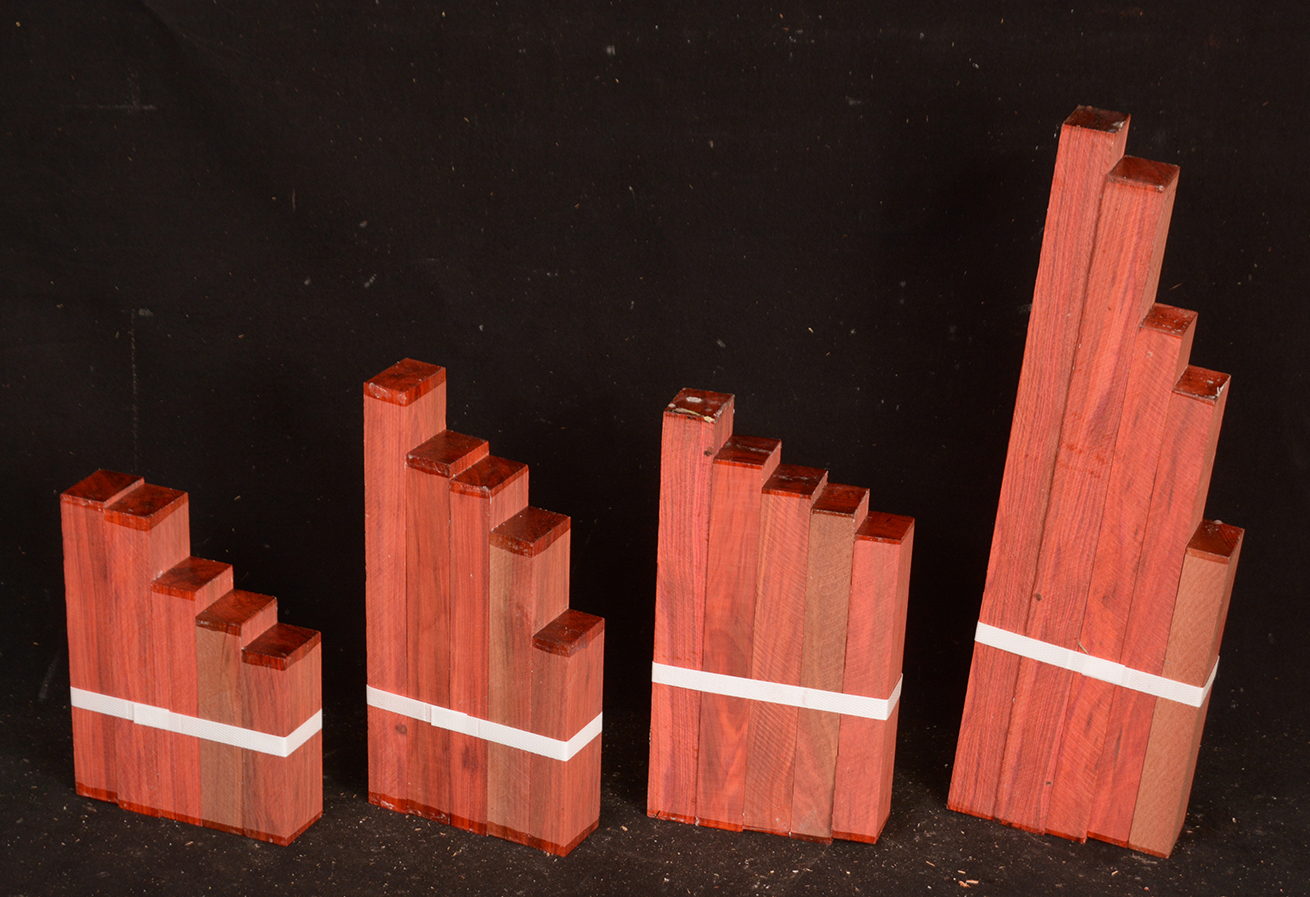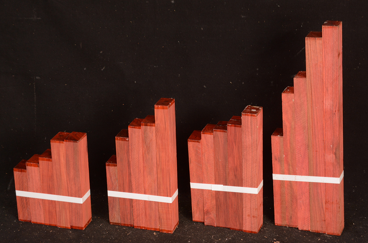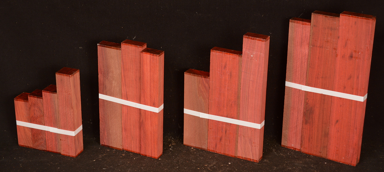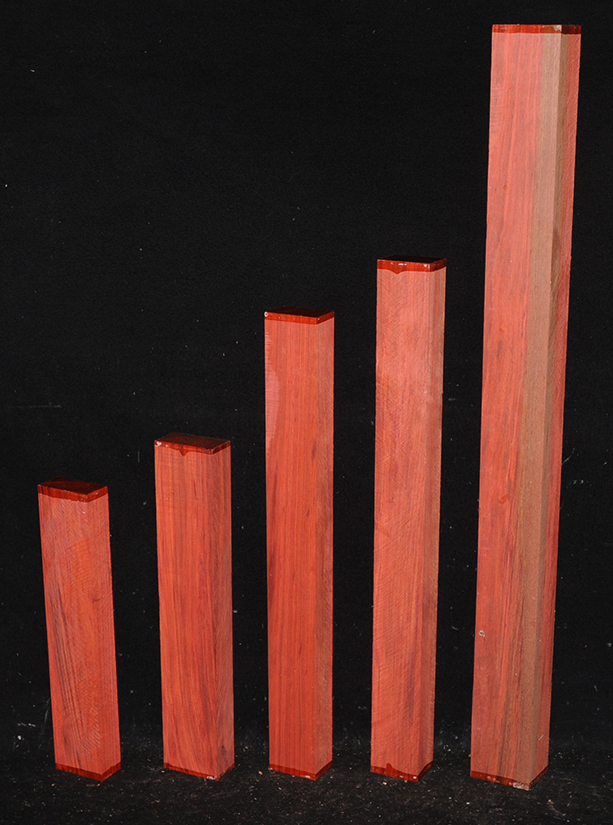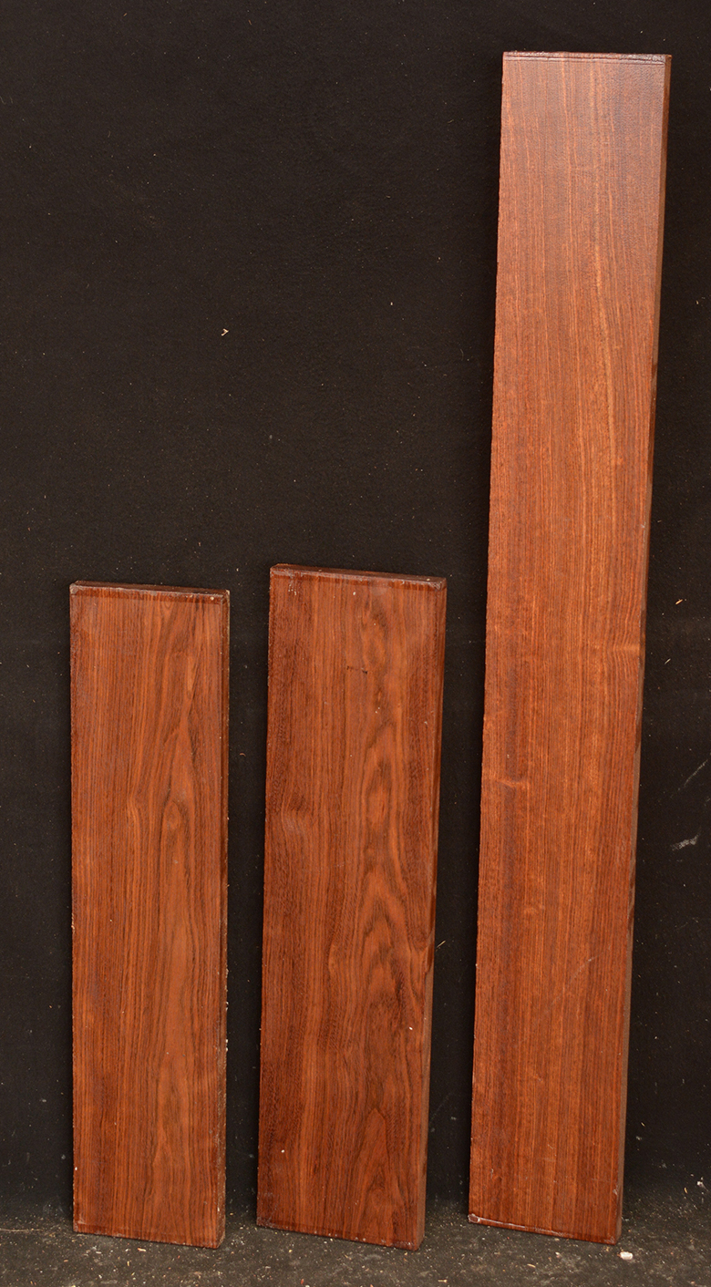 This Rosewood species has a reddish-brown to dark brown colored heartwood contrasting the almost white sapwood. The dust has a sweet odor. It is an excellent furniture/case works/jewelry box wood and even though it has a medium texture it does take a nice polish. We also offer it as a musical instrument wood (see guitar fingerboards and backs & sides elsewhere on the site). It has a very "crisp" tap tone with good sustain.