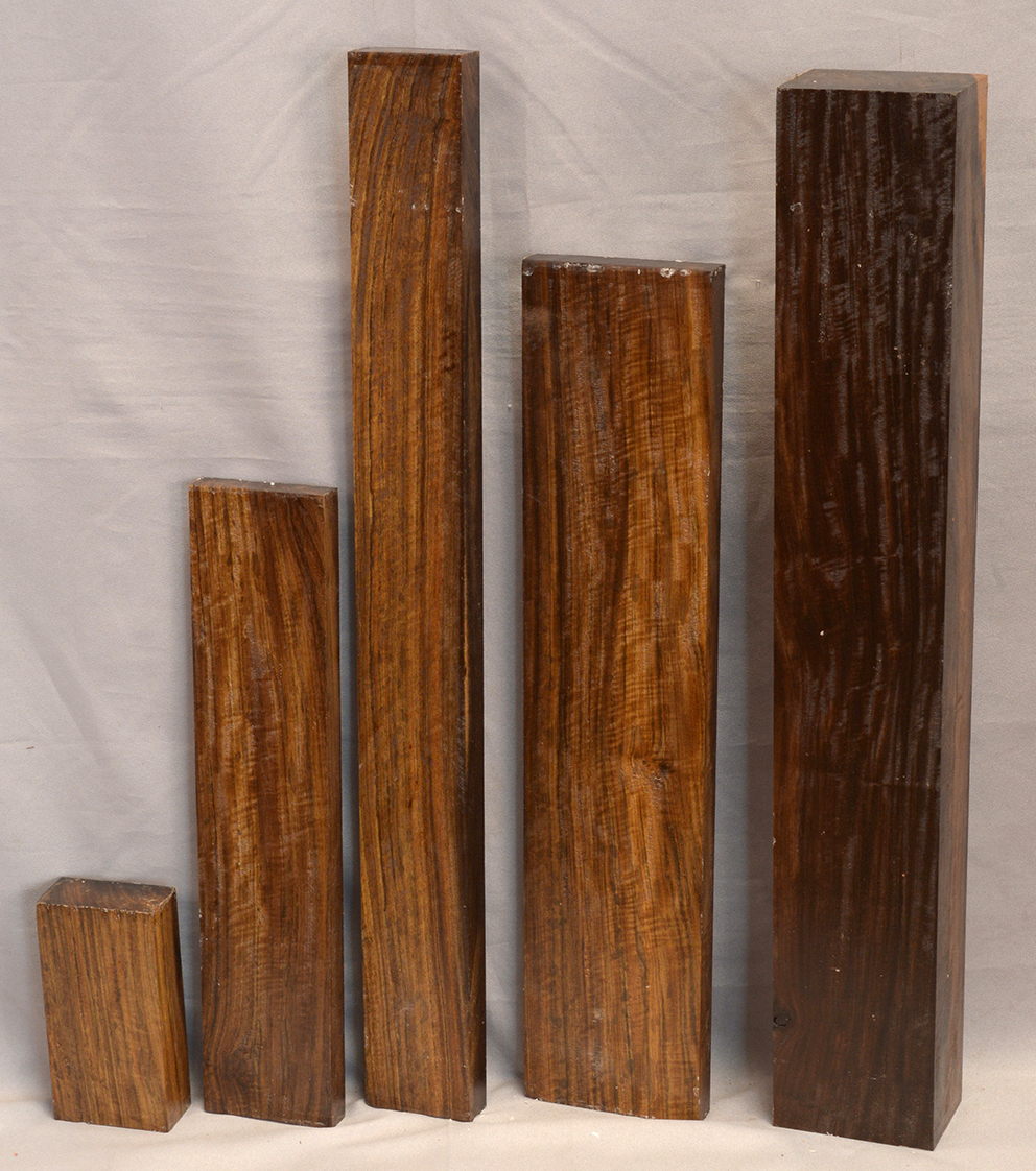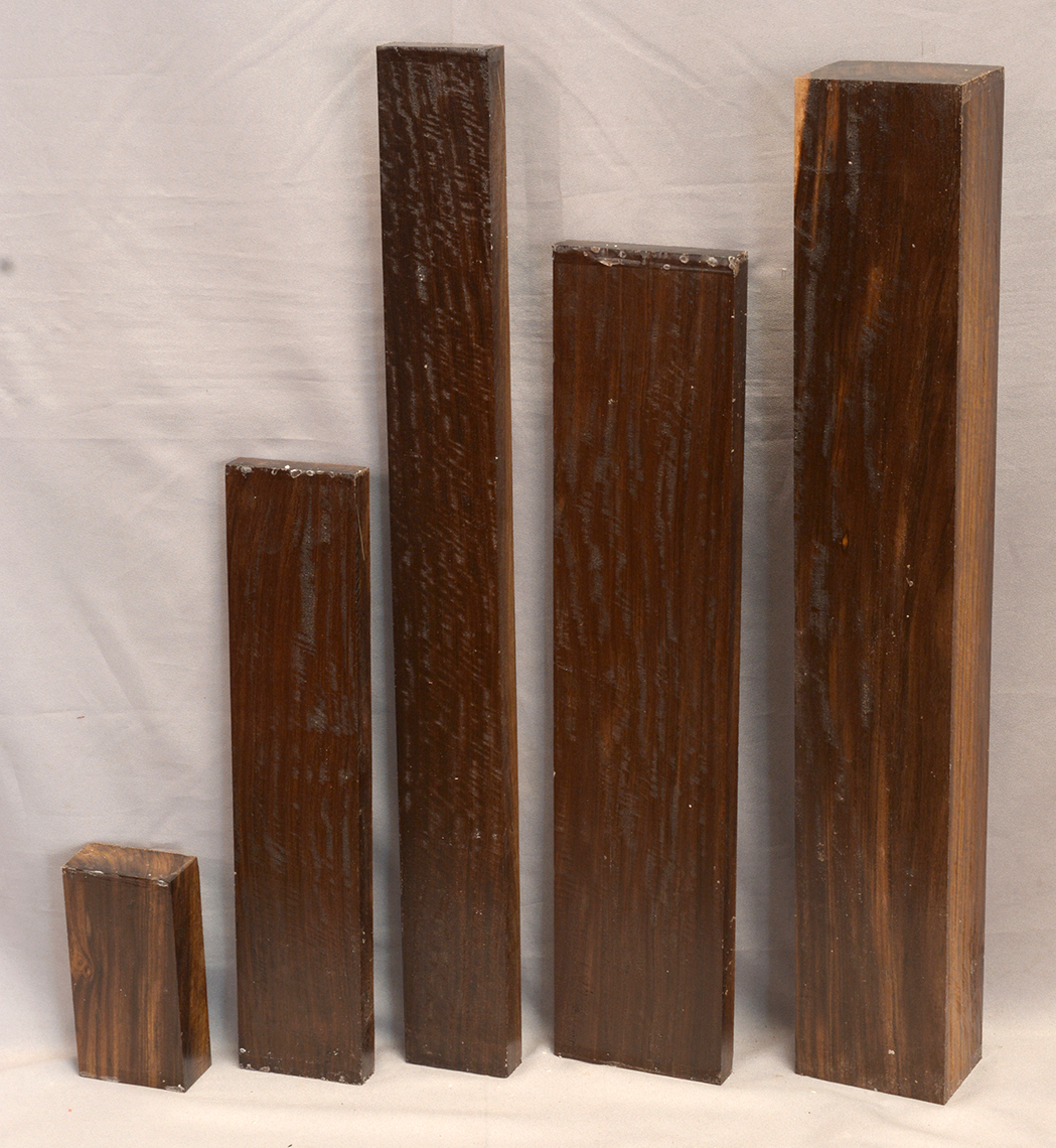 C & D are Figured Macassar Ebony, 5 pieces each.