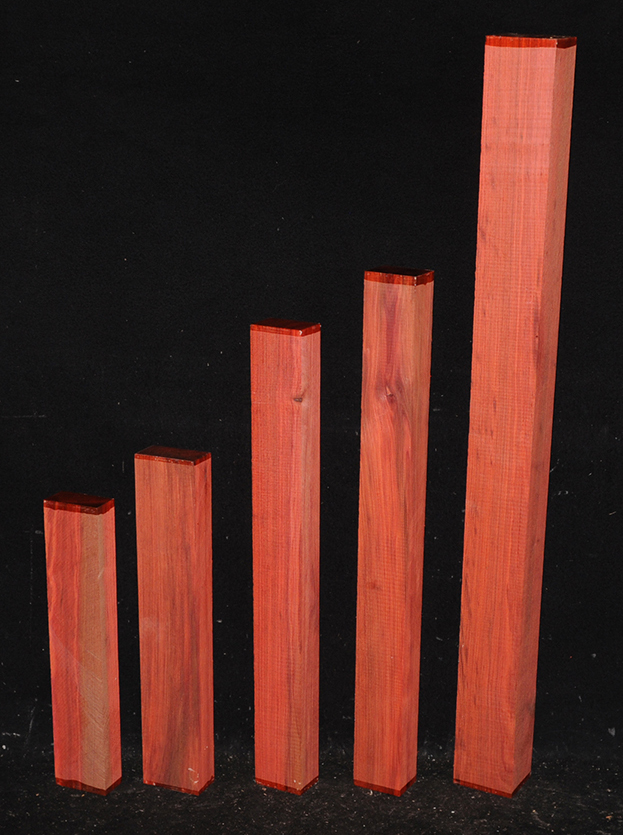 Also called Satine, Cacique, and Cardinalwood. The heartwood is a rich strawberry red, in sharp contrast to the light colored sapwood. Takes a high, lustrous finish. Kiln-dried.
