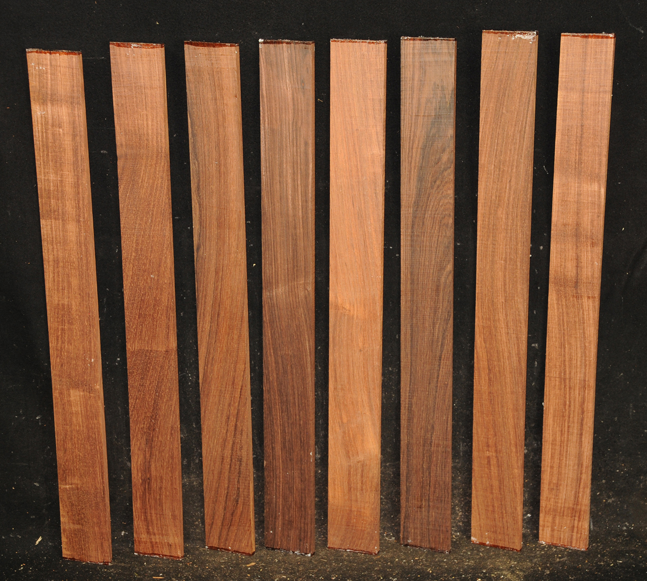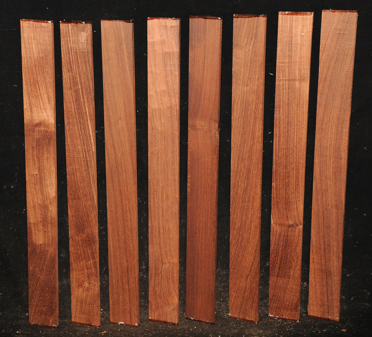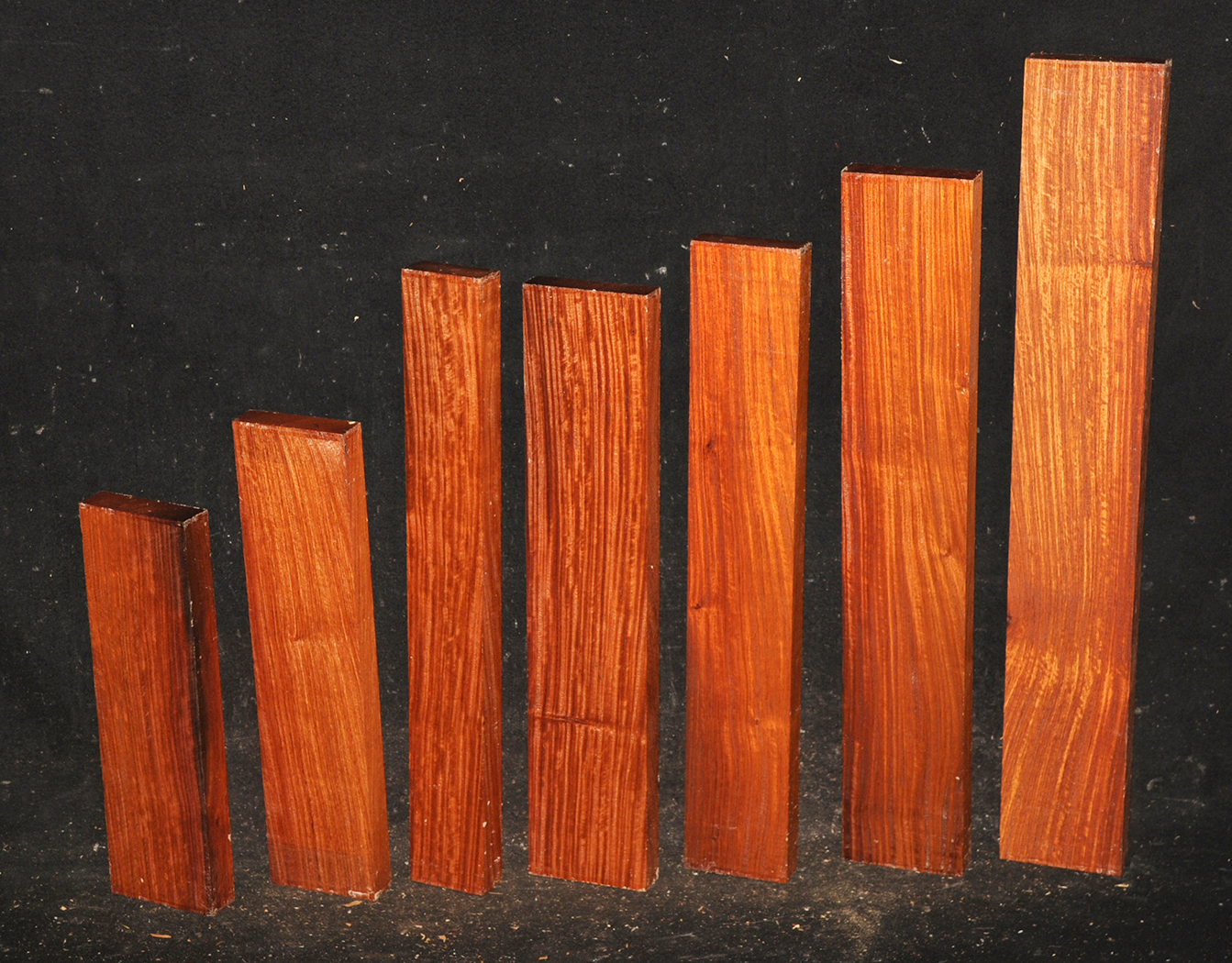 This Brazilian hardwood is occasionally seen to have the bright, brilliantly hued colors as found in these boards. It has medium density and is easy to work and finish.