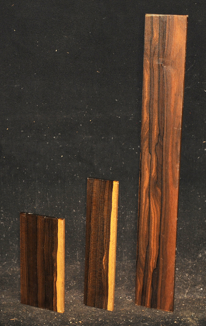 Sometimes called Gabon or Gaboon, this Ebony is sometimes jet black but oftentimes has grayish streaks that mostly disappear when finished or after the made object has been put into service. This Ebony has a marked resistance to checking that is characteristic of some of the Indian and Asian species. It has a wonderful texture and is easily carved, planed, turned, and milled. It is fairly fine-grained and takes a high polish. This Ebony usually originates in either Cameroon or Nigeria and the logs are rough hewn in the forest and oftentimes brought to the nearest road by human porters. With the disappearance of other species of black Ebony this species is fast becoming the Ebony of choice.