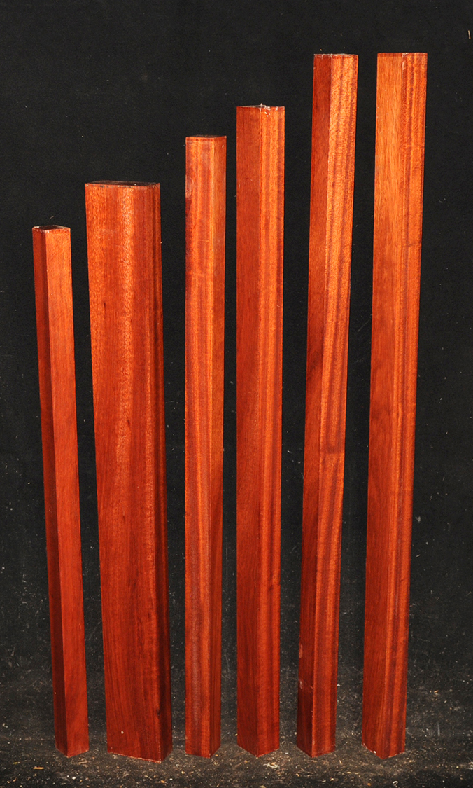 Called by some woodworkers African Rosewood, Bubinga is a deep, lustrous, brownish-red color with a fine, darker striping. The figure makes the wood doubly beautiful. It is very hard and heavy and takes a glassy, smooth finish.
