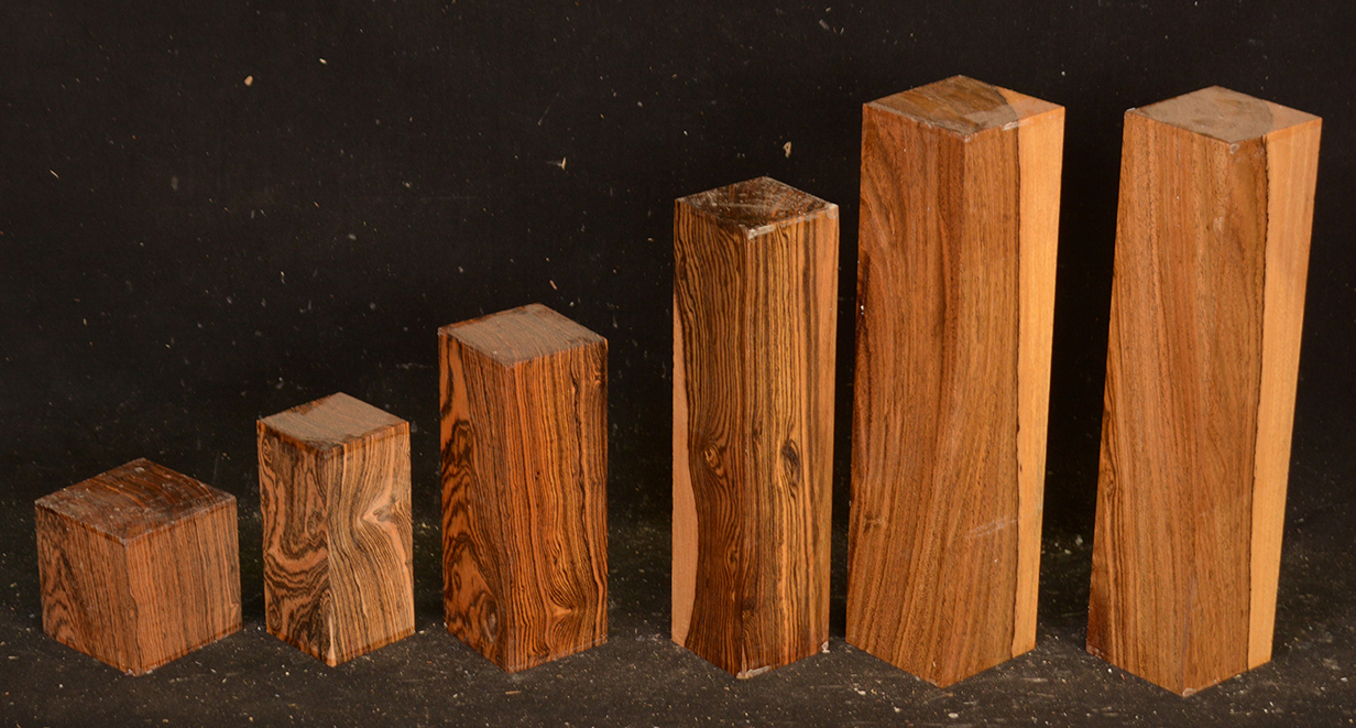 Bocote is an oily wood with a yellowish to dark brown color accented with irregular black stripes and streaks. It has a spicy smell and is hard, heavy and strong. It is easy to work and takes a very nice polish. This beautiful wood is seldom seen in woodworker's shops.
