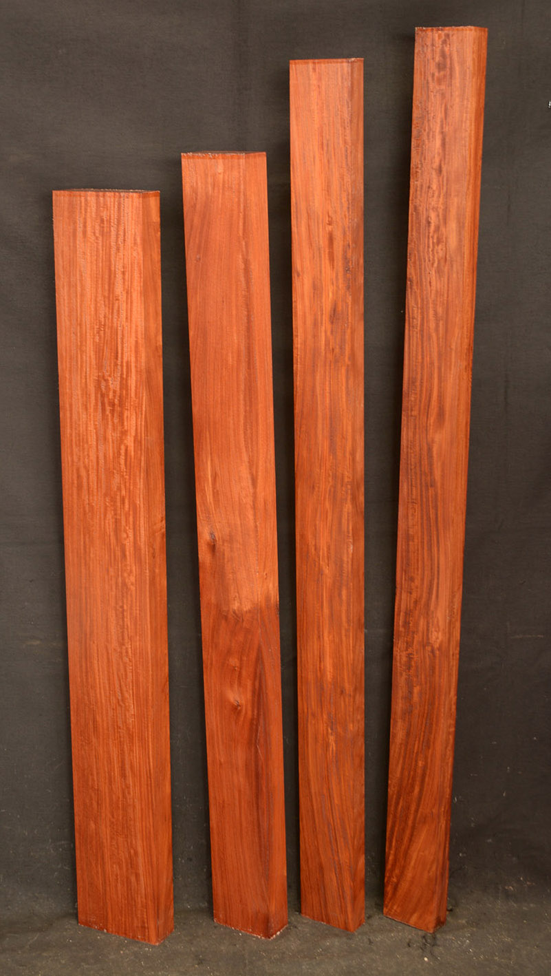 This Brazilian hardwood is occasionally seen to have the bright, brilliantly hued colors as found in these boards. It has medium density and is easy to work and finish. Kiln-dried.