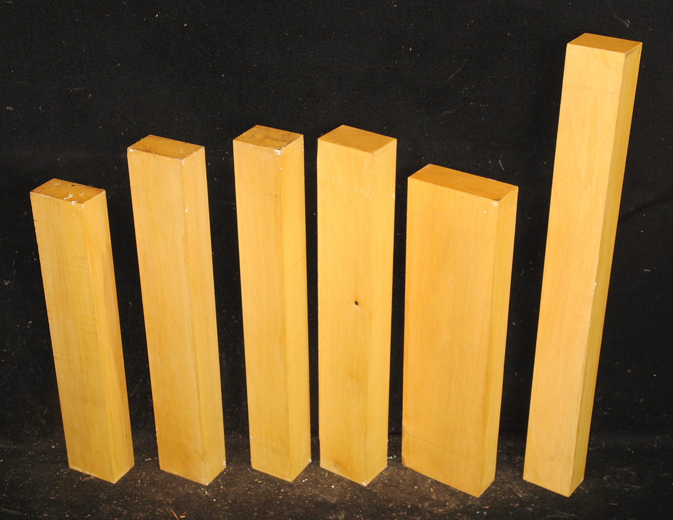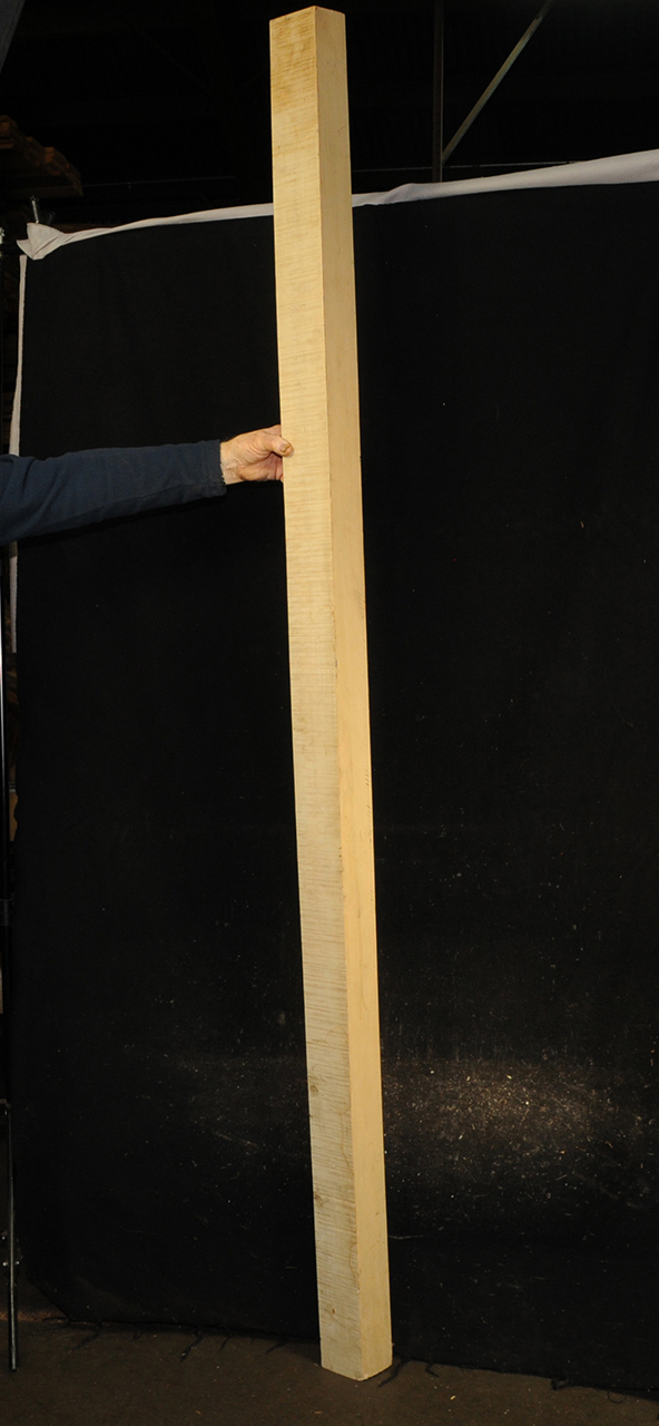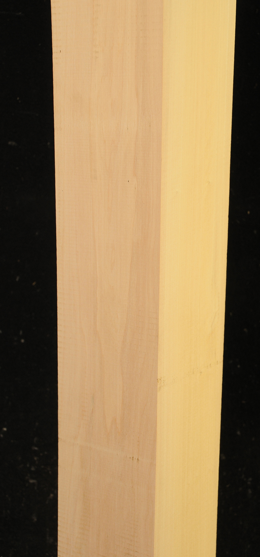 The heartwood is white or cream to light brown or reddish brown. Because of the generally small size of available logs, most sawmills produce flatsawn boards which will show a broken curl on the surface and a fiddleback curl on the quartersawn edge. Hard and heavy, 45 lbs/cu ft. Easy to work and takes a smooth polish. U.S.A.