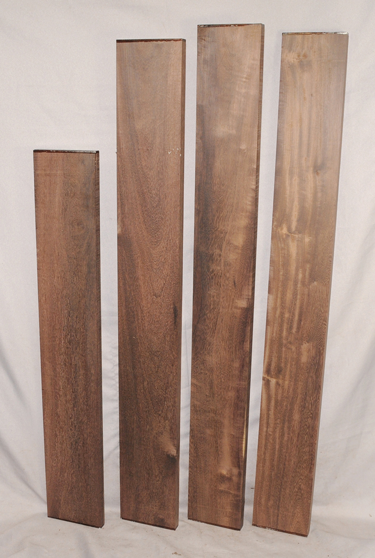 This brick-red colored West African hardwood was once one of the more common imported hardwoods but has become increasingly scarce in the last couple of years. It is easy to work, takes a nice polish and is dimensionally stable.
