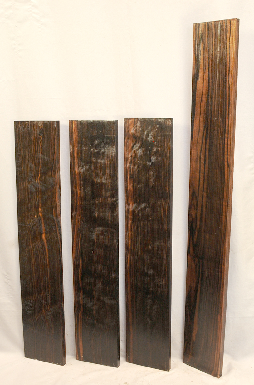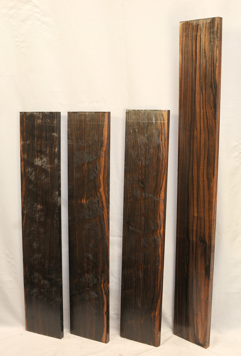 The heartwood is purplish to brownish-black with dark gray streaks giving an overall impression of being black. Lustrous with an attractive inner chatoyance. Very hard, heavy, close-grained, and virtually free from pores. Its stability and lovely tonal qualities make it an excellent instrument wood.
