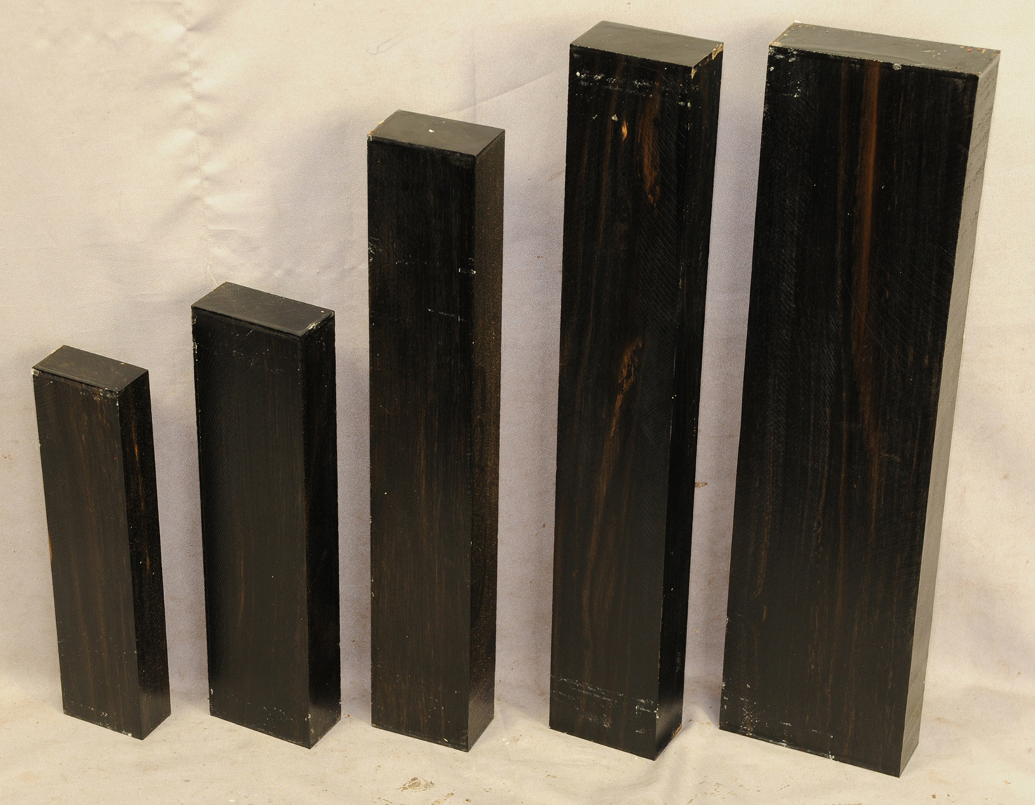 This Ebony is unsurpassed for its beauty and blackness. It is fairly fine-textured and takes a high polish. Finest ebony in the world. Rare.