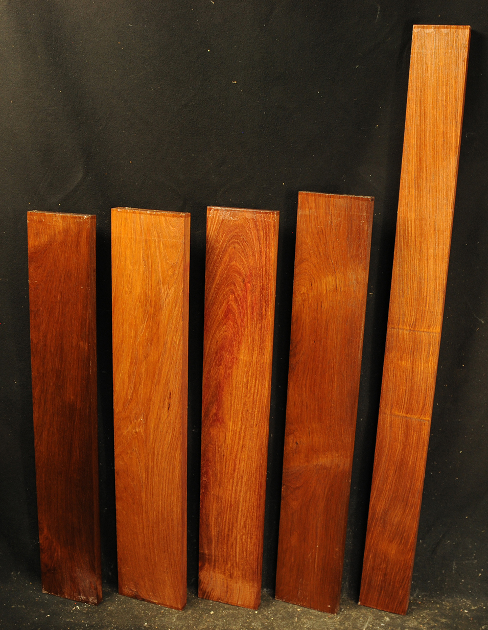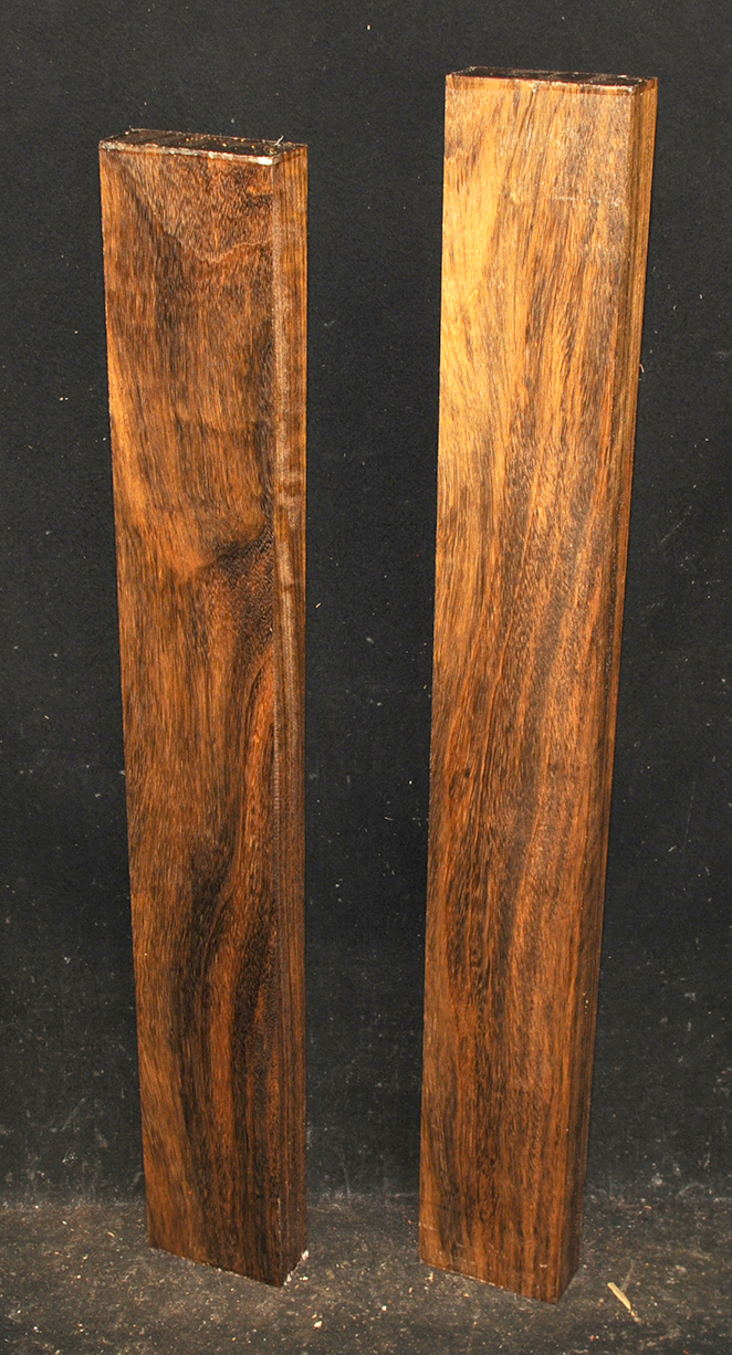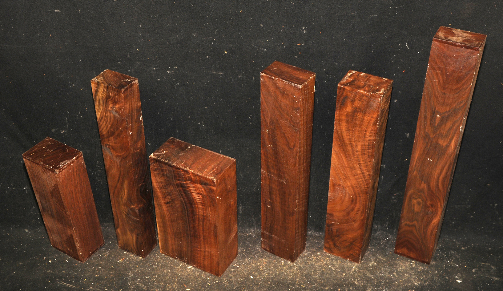 This Rosewood species has a reddish-brown to dark brown colored heartwood contrasting the almost white sapwood. The dust has a sweet odor. It is an excellent furniture/case works/jewelry box wood and even though it has a medium texture it does take a nice polish. We also offer it as a musical instrument wood (see guitar fingerboards and backs & sides elsewhere on the site). It has a very "crisp" tap tone with good sustain.