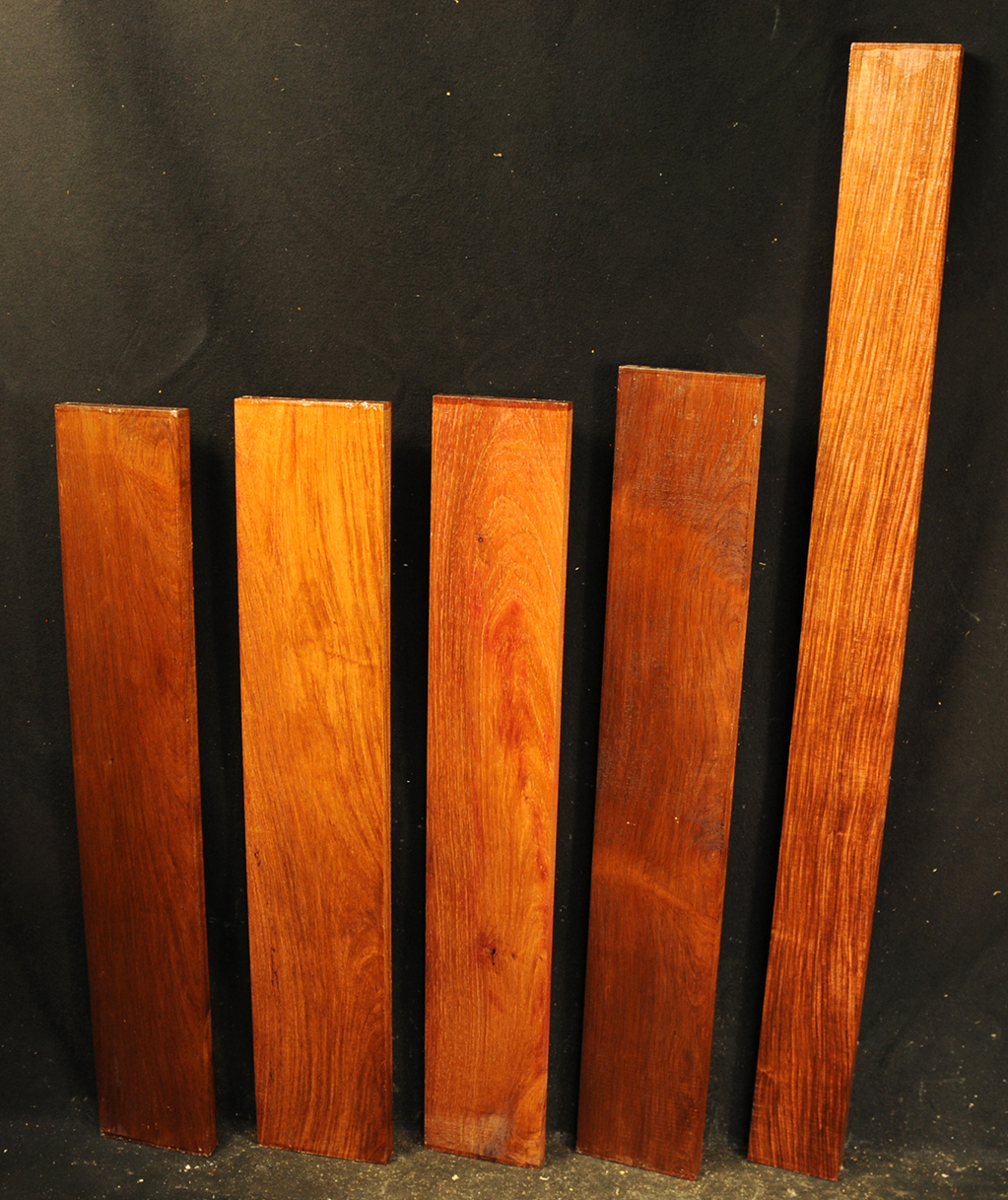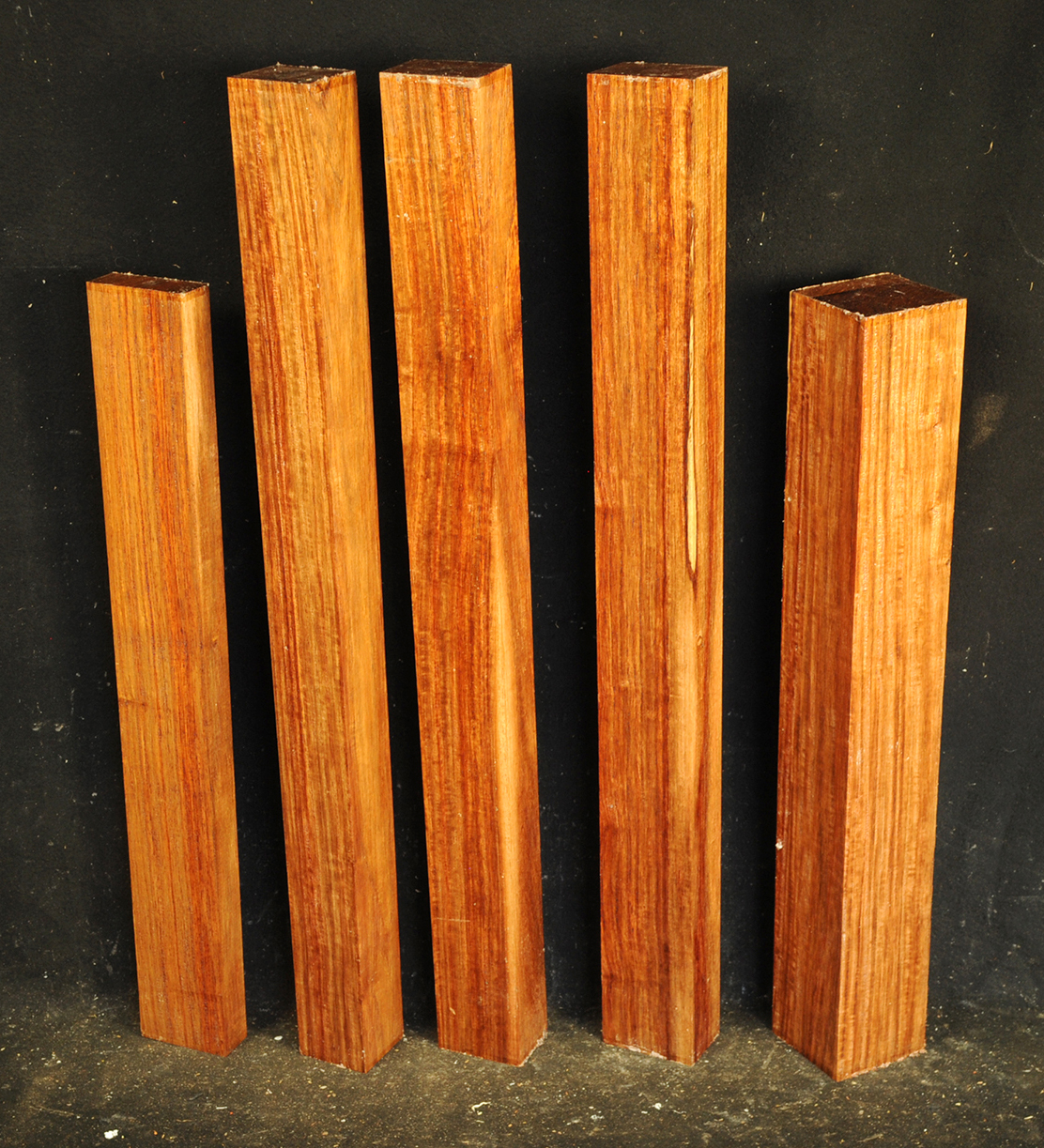 This brick-red colored West African hardwood was once one of the more common imported hardwoods but has become increasingly scarce in the last couple of years. It is easy to work, takes a nice polish and is dimensionally stable.