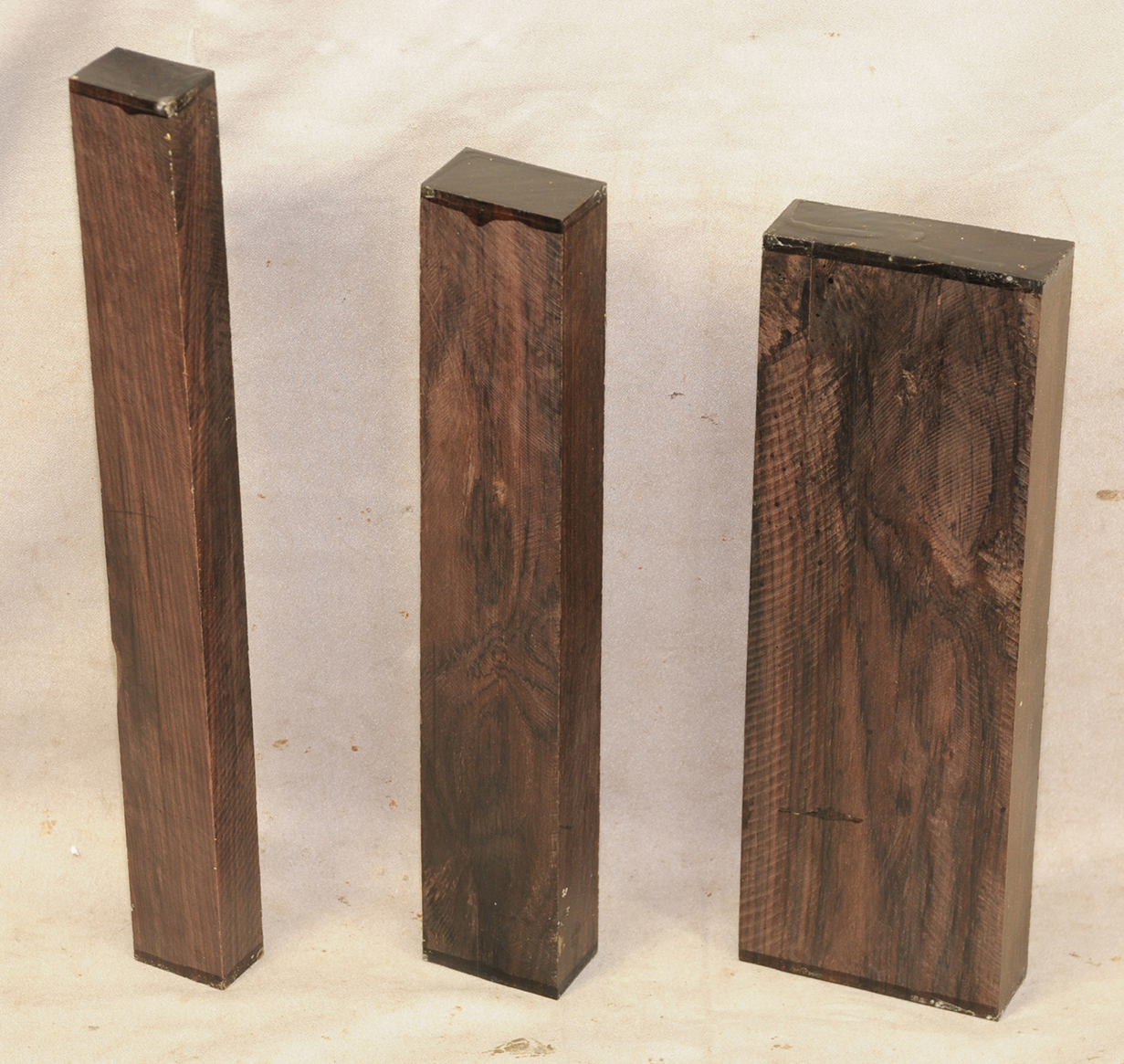 The heartwood is purplish to brownish-black with dark gray streaks giving an overall impression of being black. Lustrous with an attractive inner chatoyance. Very hard, heavy, close-grained, and virtually free from pores. Its stability and lovely tonal qualities make it an excellent instrument wood.