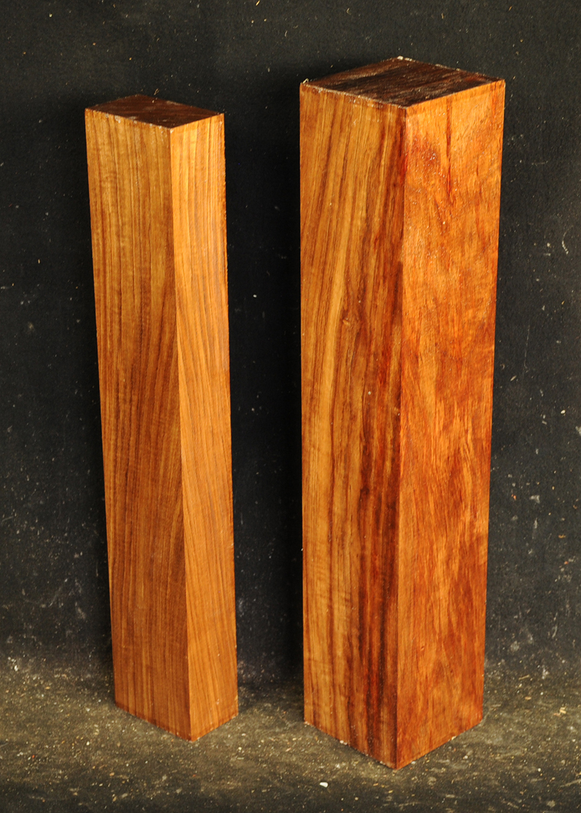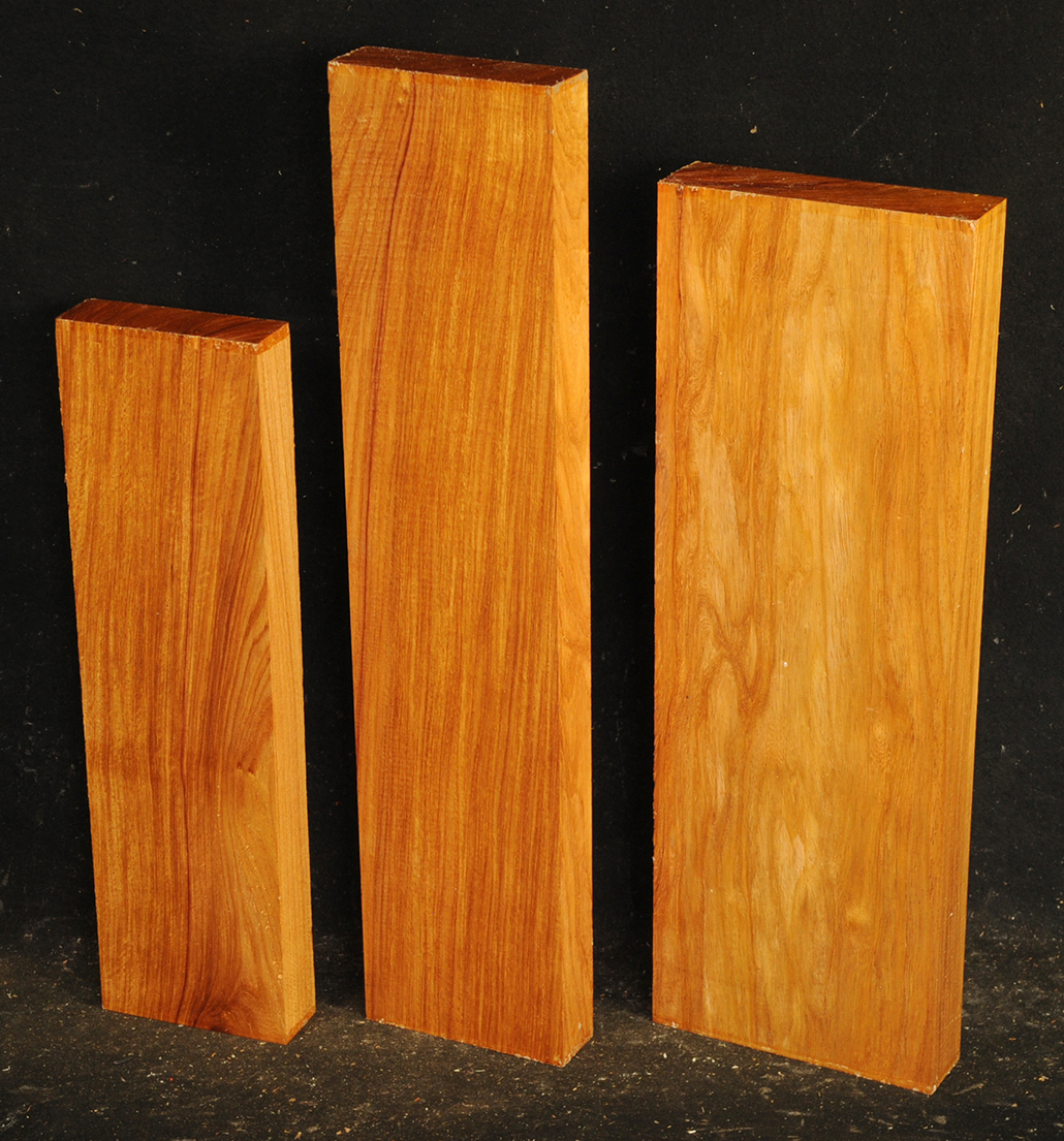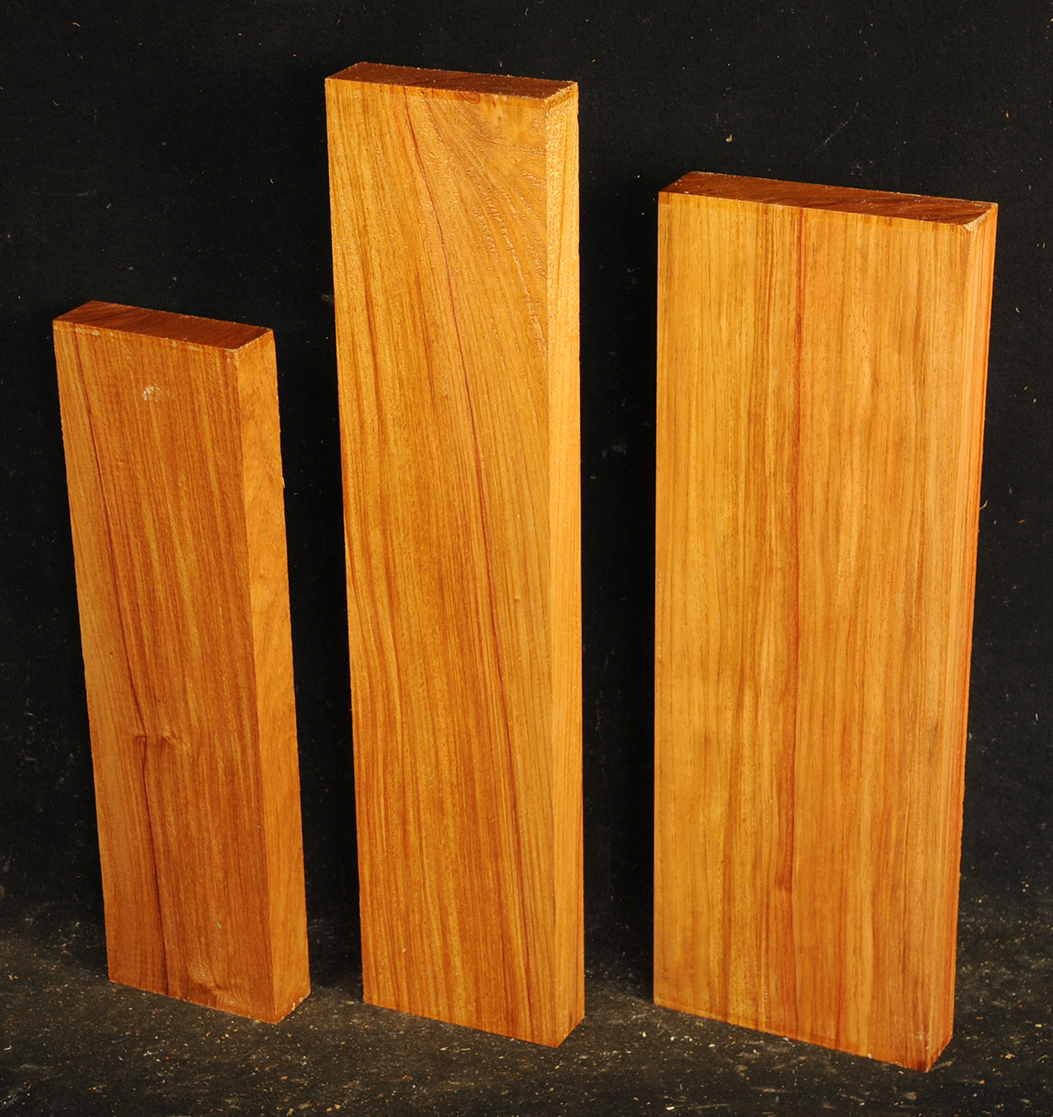 Also called New Guinea Rosewood. It is usually a beautiful, highly lustrous golden yellow color sometimes with reddish streaks, though these pieces have more golden brown tones. A nice turning wood it is also used in furniture, jewelry boxes, handles, etc. It is easy to work and glue and takes a nice polish.