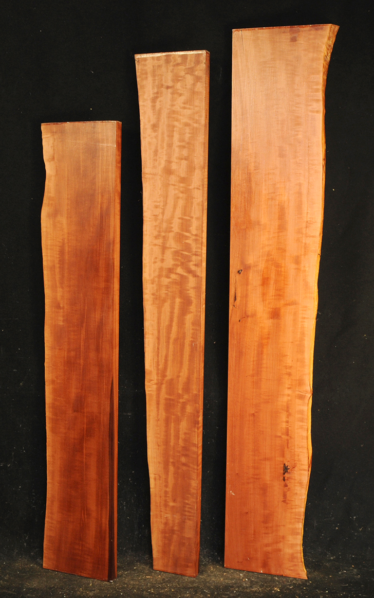 Also called Satine, Cacique, and Cardinalwood. The heartwood is a rich strawberry red, in sharp contrast to the light colored sapwood. Takes a high, lustrous finish.