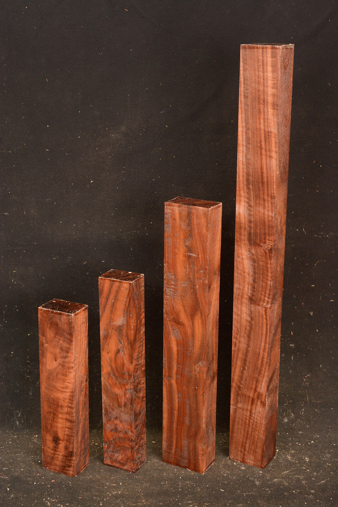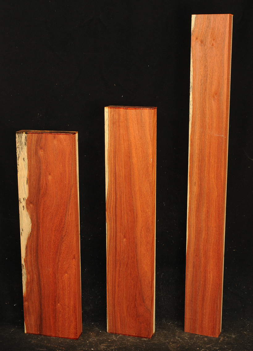 This Rosewood species has a reddish-brown to dark brown colored heartwood contrasting the almost white sapwood. The dust has a sweet odor. It is an excellent furniture/case works/jewelry box wood and even though it has a medium texture it does take a nice polish. We also offer it as a musical instrument wood (see guitar fingerboards and backs & sides elsewhere on the site). It has a very "crisp" tap tone with good sustain.