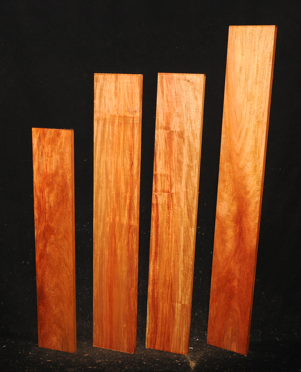 Also called Satine, Cacique, and Cardinalwood. The heartwood is a rich strawberry red, in sharp contrast to the light colored sapwood. Takes a high, lustrous finish.