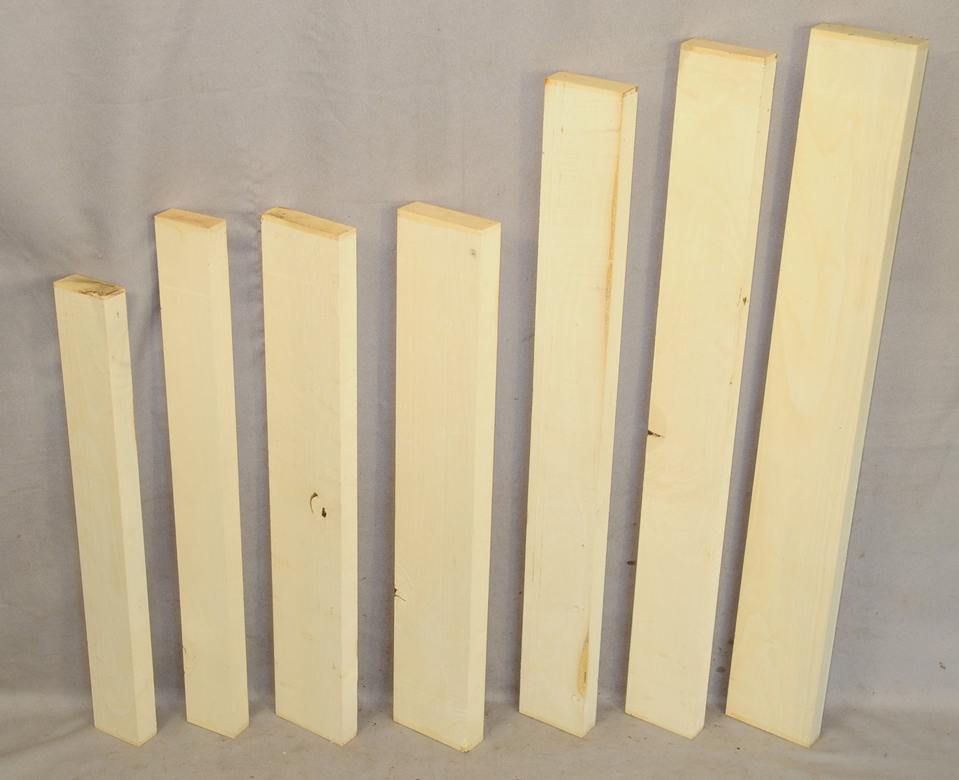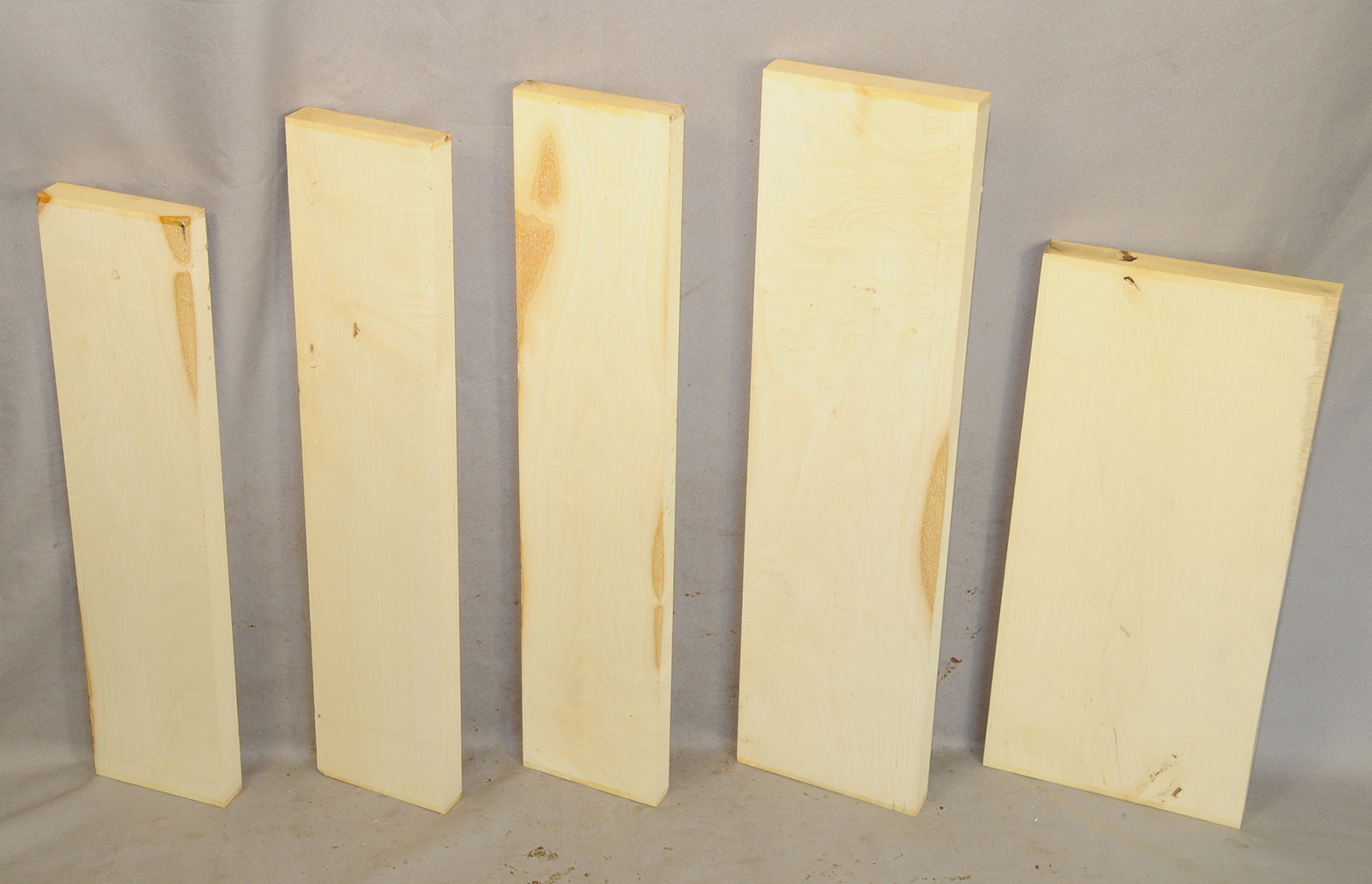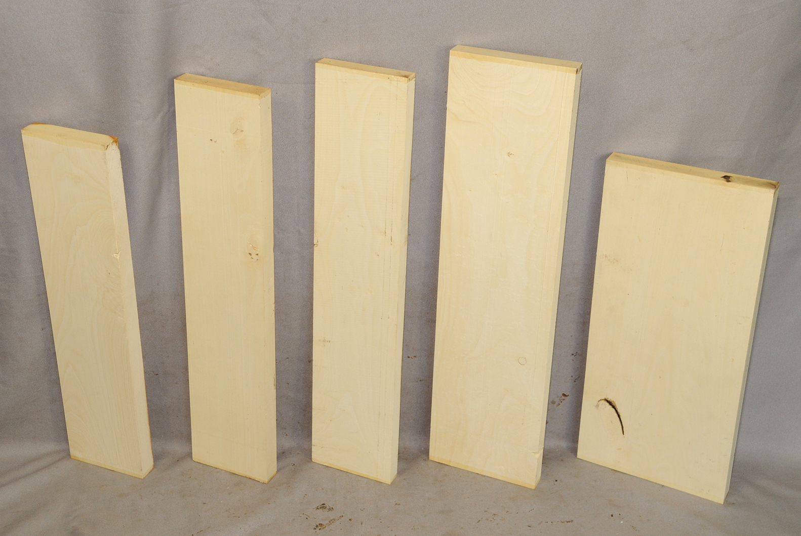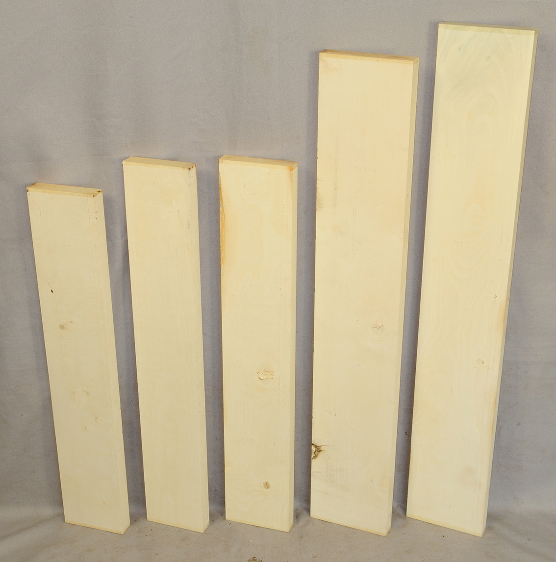 This European Maple is native to central Europe and west Asia. It is a tough, white or cream colored, fine-grained timber. It reminds me of vanilla ice cream because it is so even-colored. It works well in any grain direction. It is used for musical instruments, furniture, cabinetry, and because it is non-staining it is used for kitchen utensils, wooden spoons, rolling pins, and cutting boards. The figure is fiddleback on the quartersawn surface and more of a broken curl on the flatsawn surface. Select, quartersawn material is used for violin backs and sides and necks. Dry.
