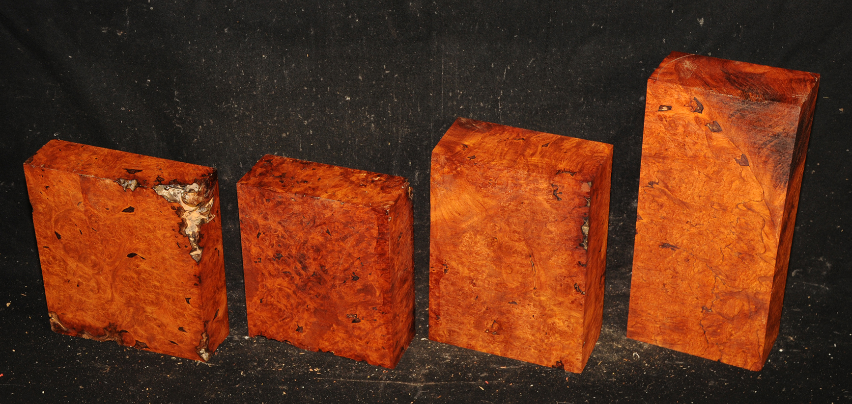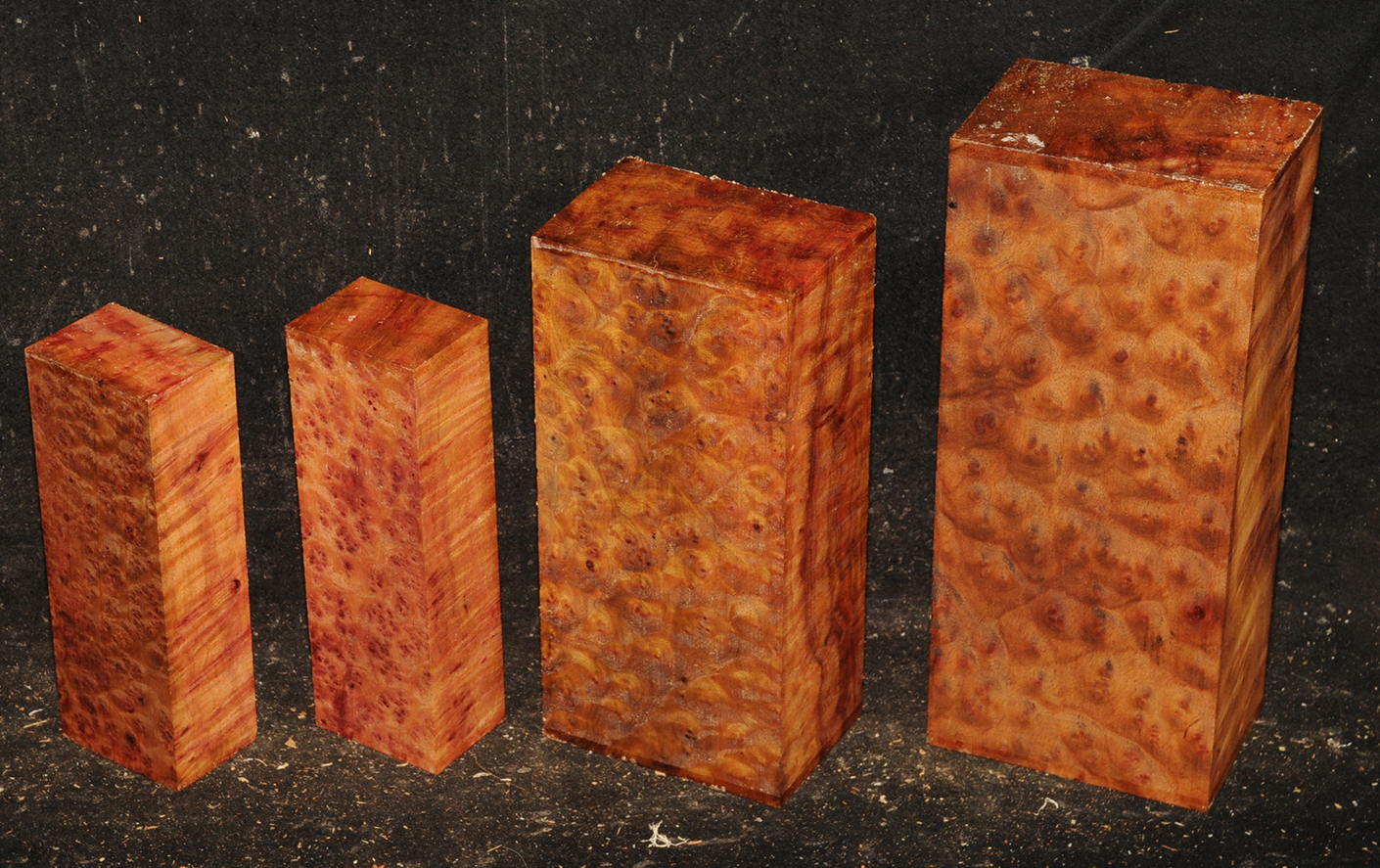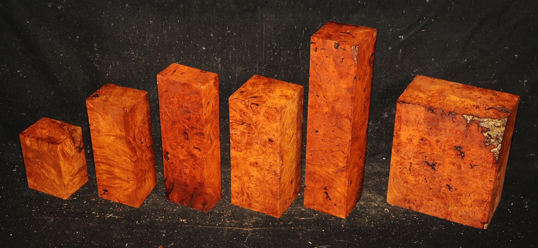This rare burl is from S.E. Asia and is seldom seen on the world market. It is fine-grained and varies in color from a light reddish-brown to almost scarlet. It is easy to work and has a very pungent, spicy scent. For a burl it is remarkably stable. Green to partially air dried.