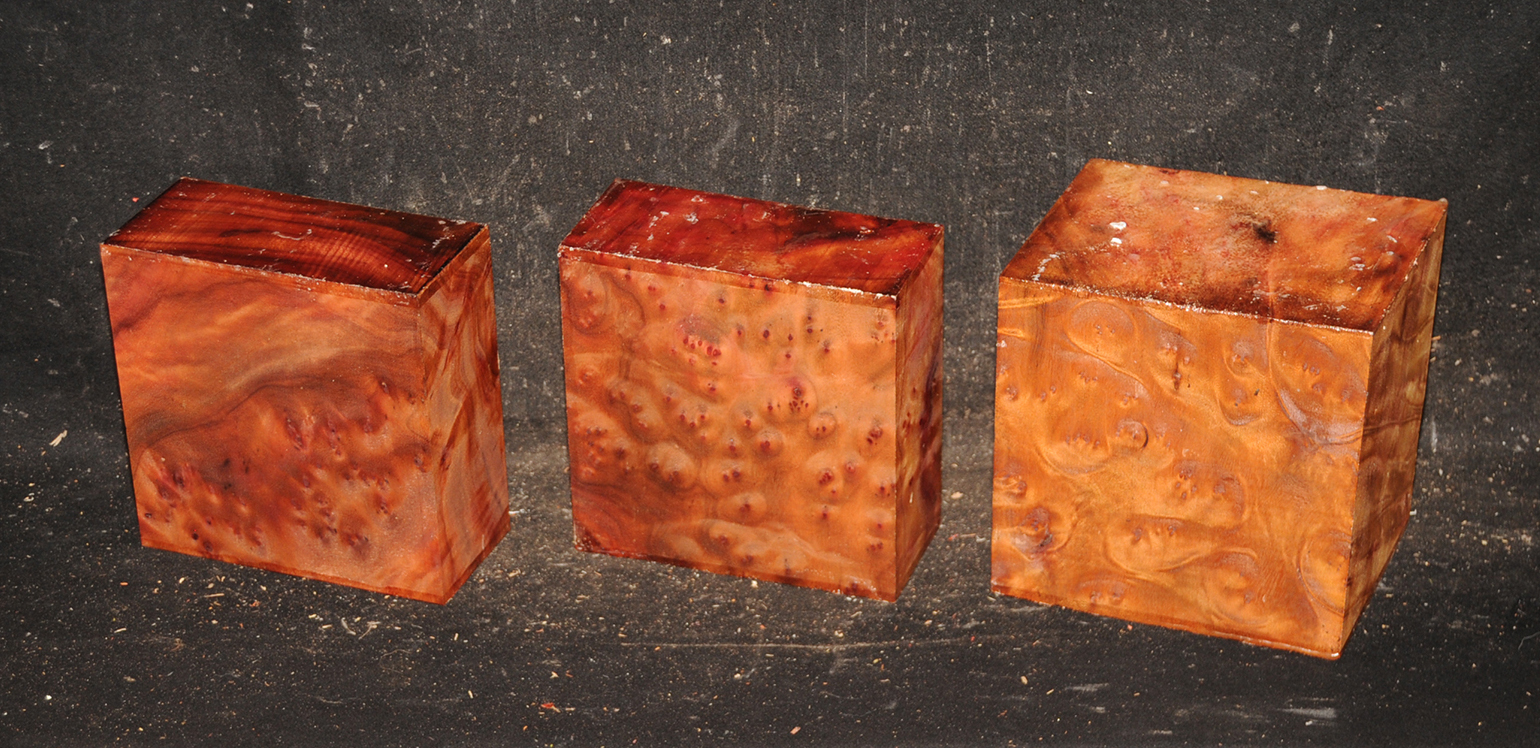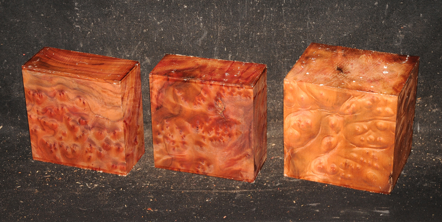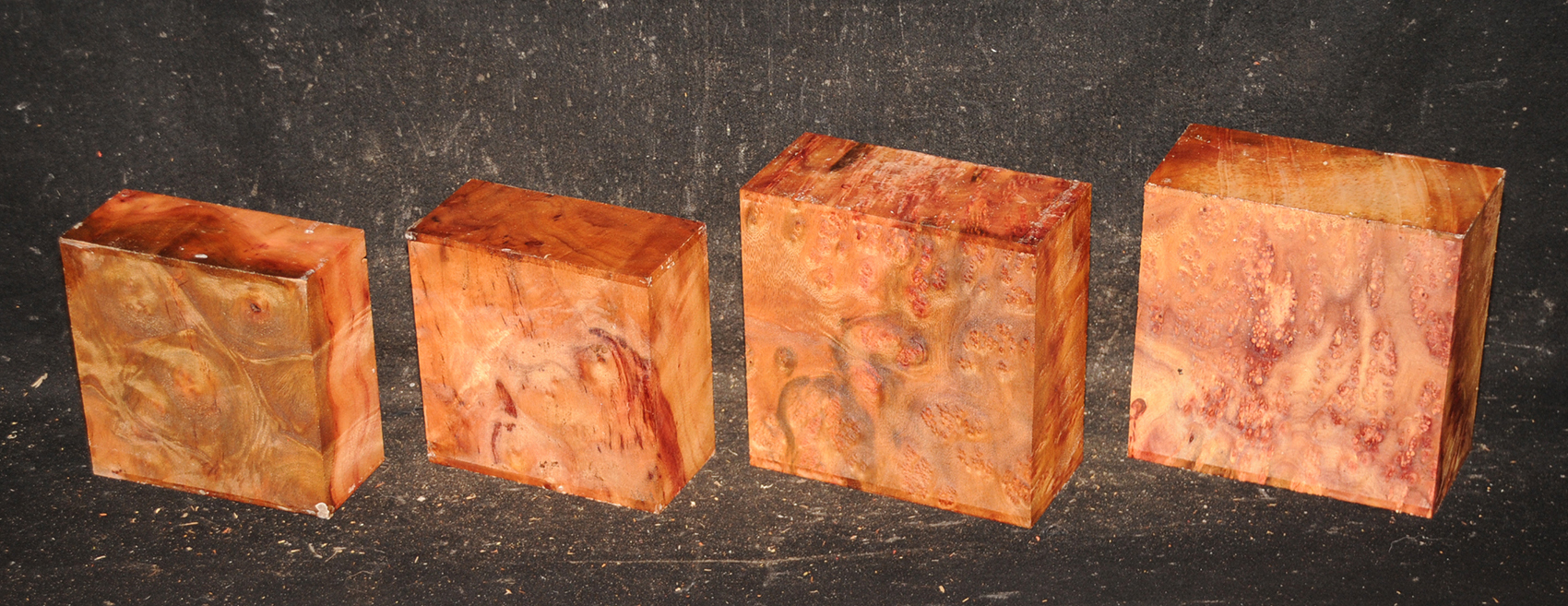 This rare burl is from S.E. Asia and is seldom seen on the world market. It is fine-grained and varies in color from a light reddish-brown to almost scarlet. It is easy to work and has a very pungent, spicy scent. For a burl it is remarkably stable. Green to partially air dried.