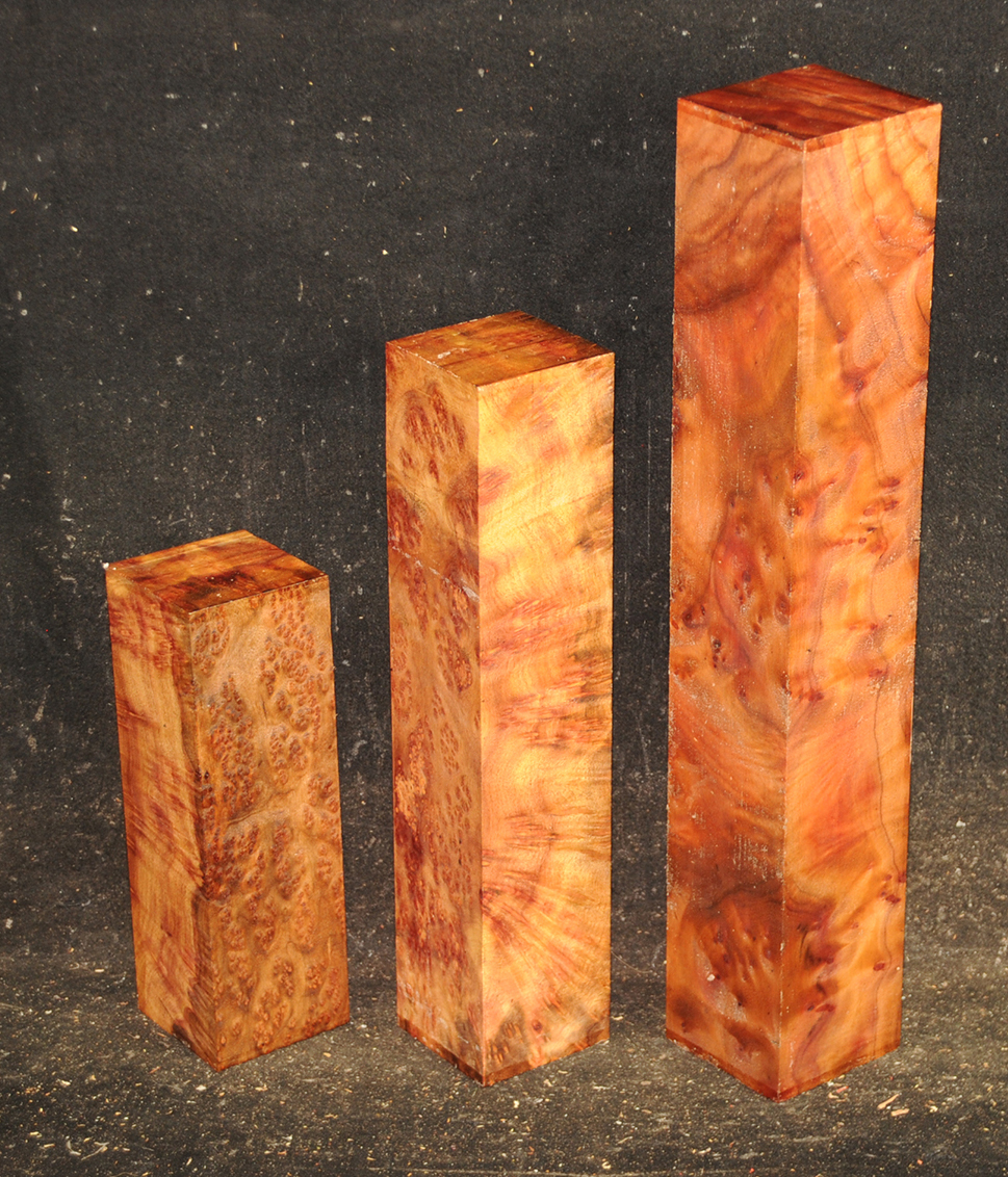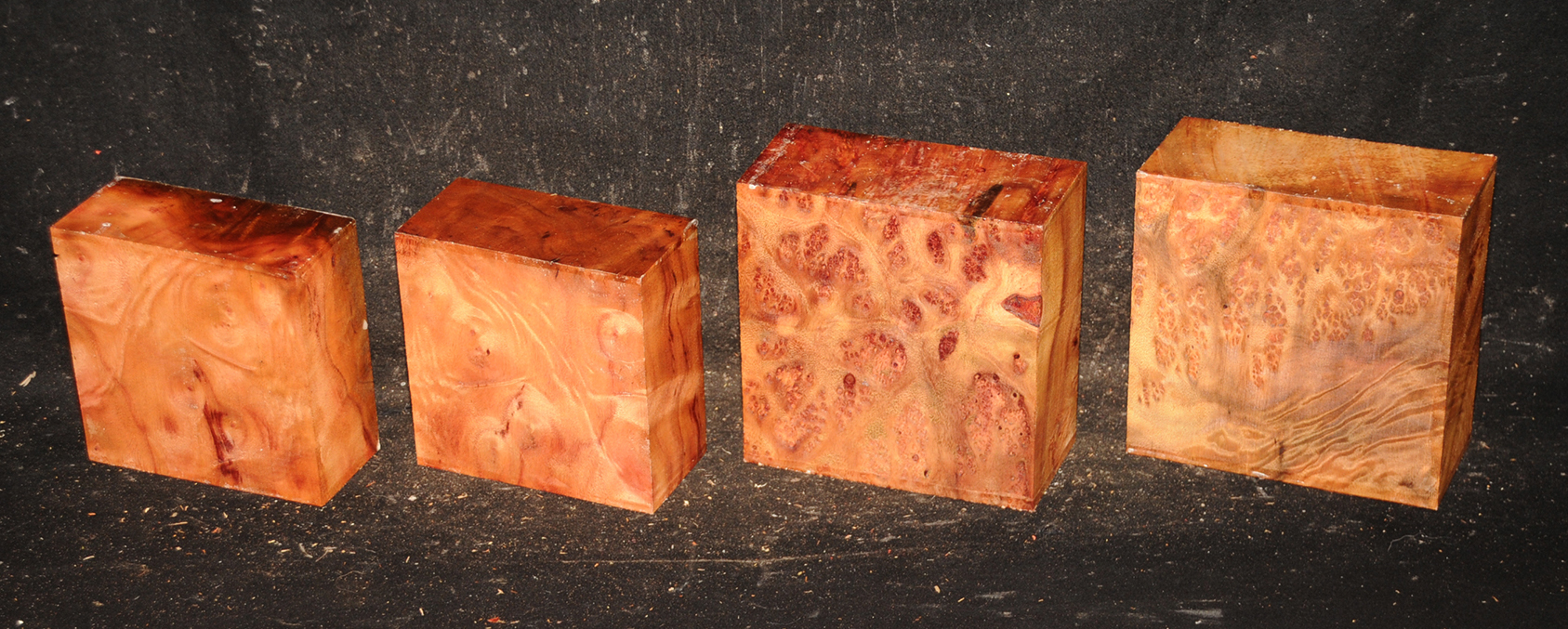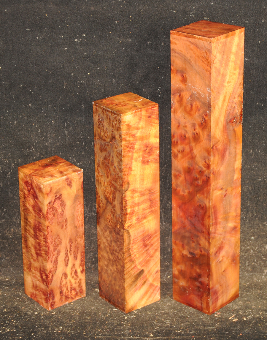 This rare burl is from S.E. Asia and is seldom seen on the world market. It is fine-grained and varies in color from a light reddish-brown to almost scarlet. It is easy to work and has a very pungent, spicy scent. For a burl it is remarkably stable. Green to partially air dried.