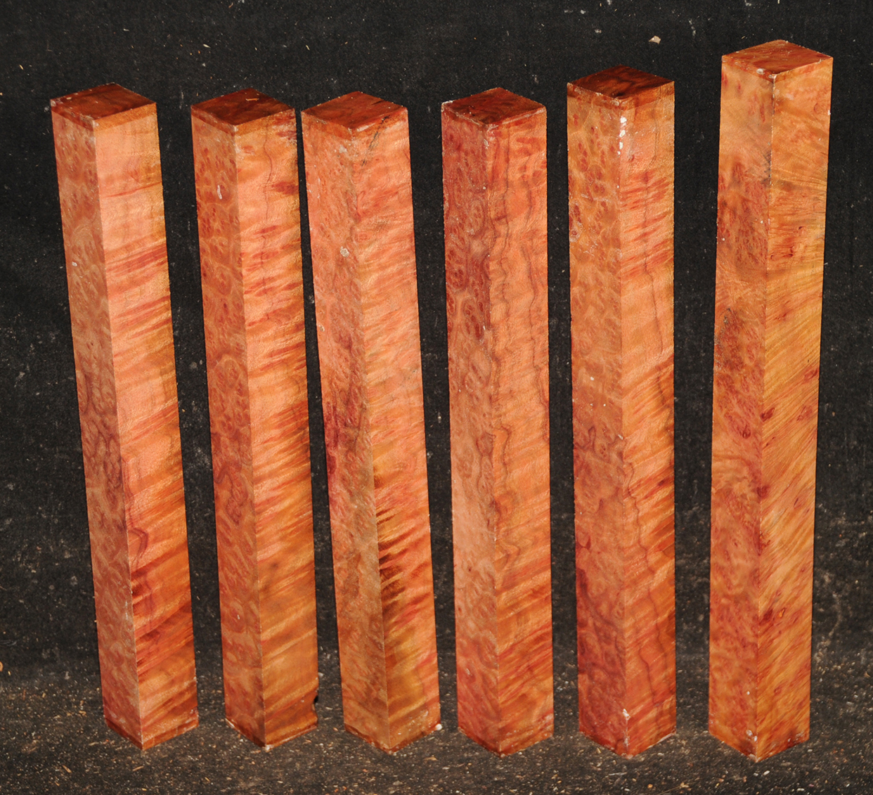 This rare burl is from S.E. Asia and is seldom seen on the world market. It is fine-grained and varies in color from a light reddish-brown to almost scarlet. It is easy to work and has a very pungent, spicy scent. For a burl it is remarkably stable. Green to partially air dried.