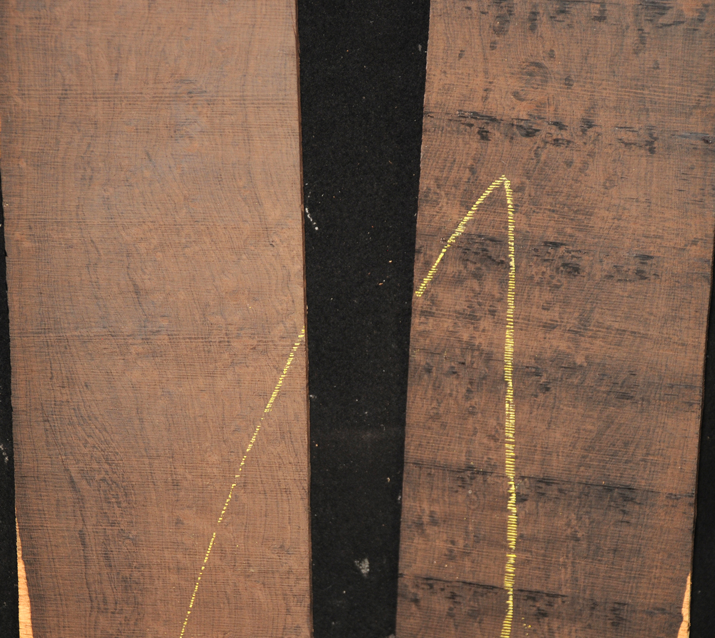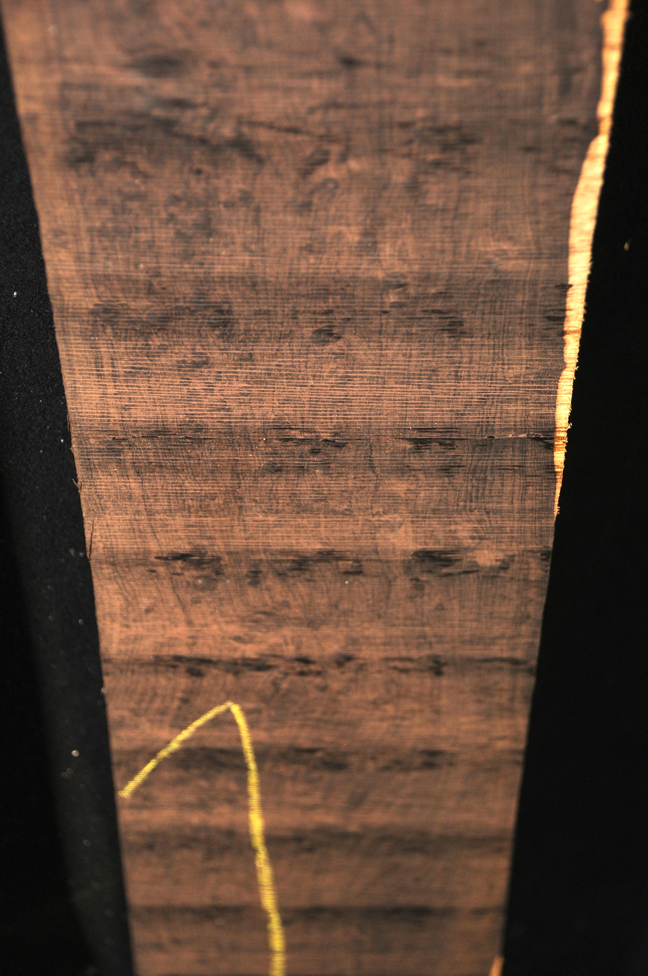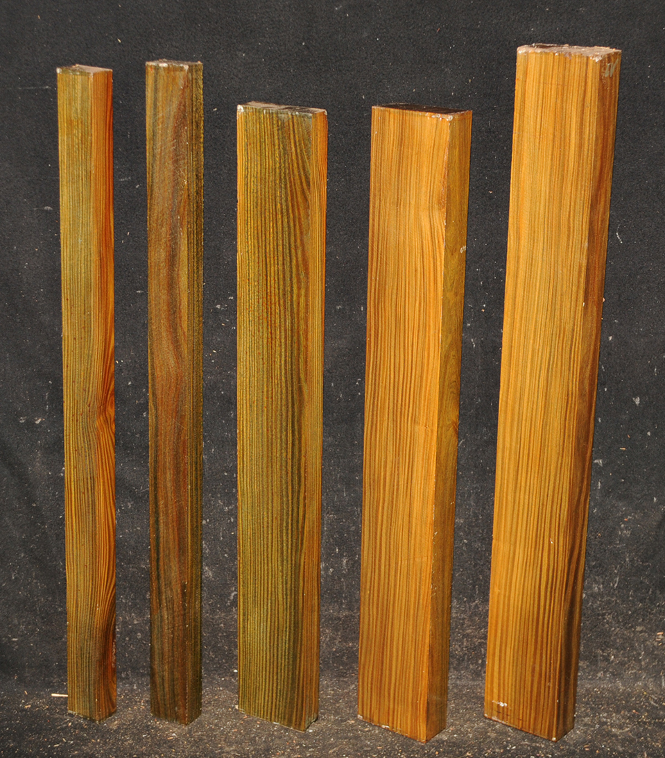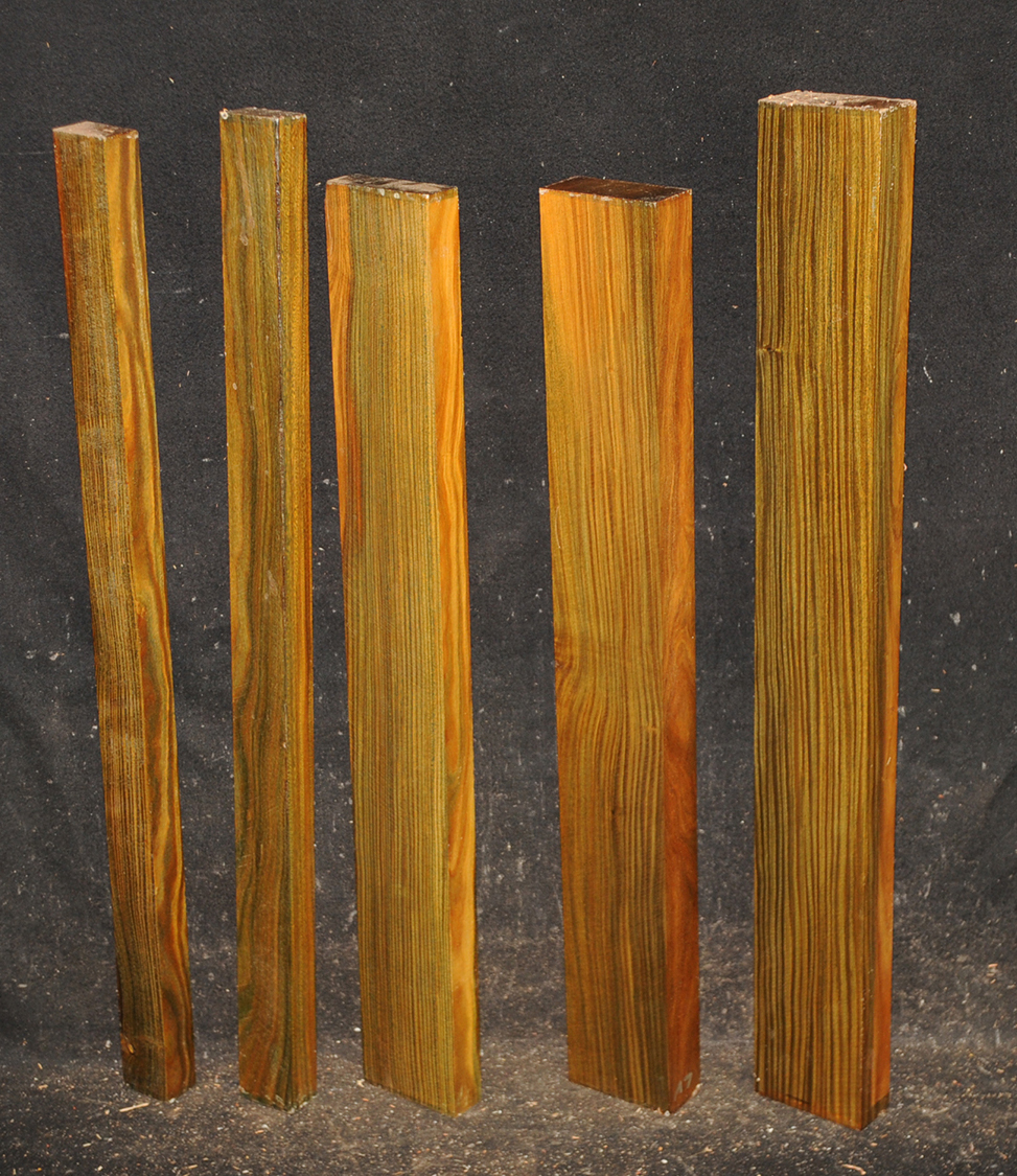 The heartwood is purplish to brownish-black with dark gray streaks giving an overall impression of being black. Lustrous with an attractive inner chatoyance. Very hard, heavy, close-grained, and virtually free from pores. Its stability and lovely tonal qualities make it an excellent instrument wood.