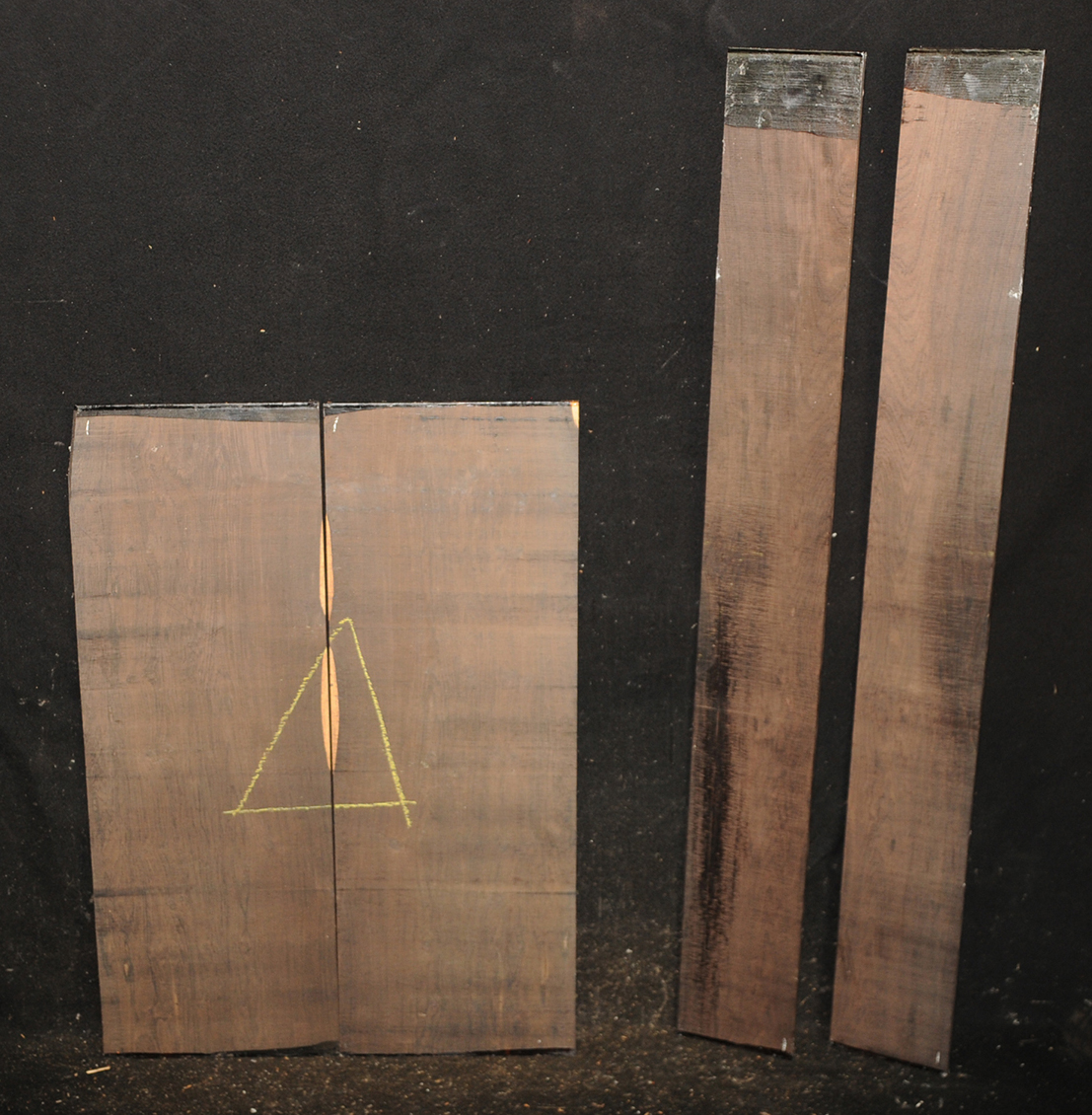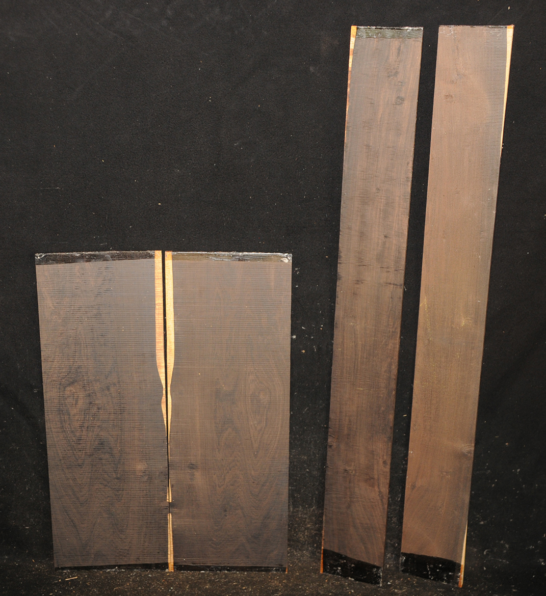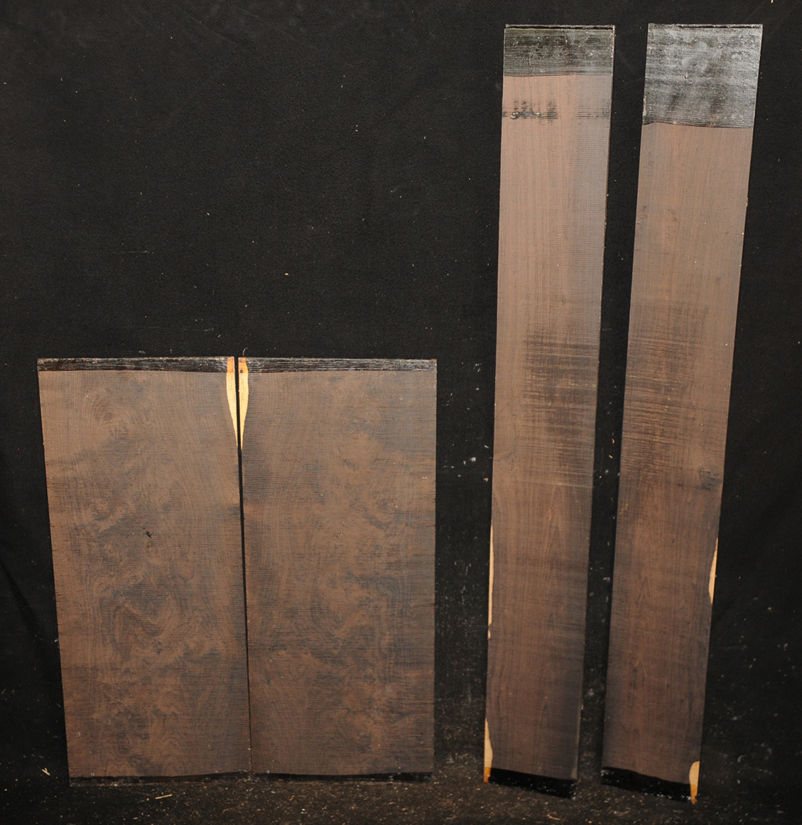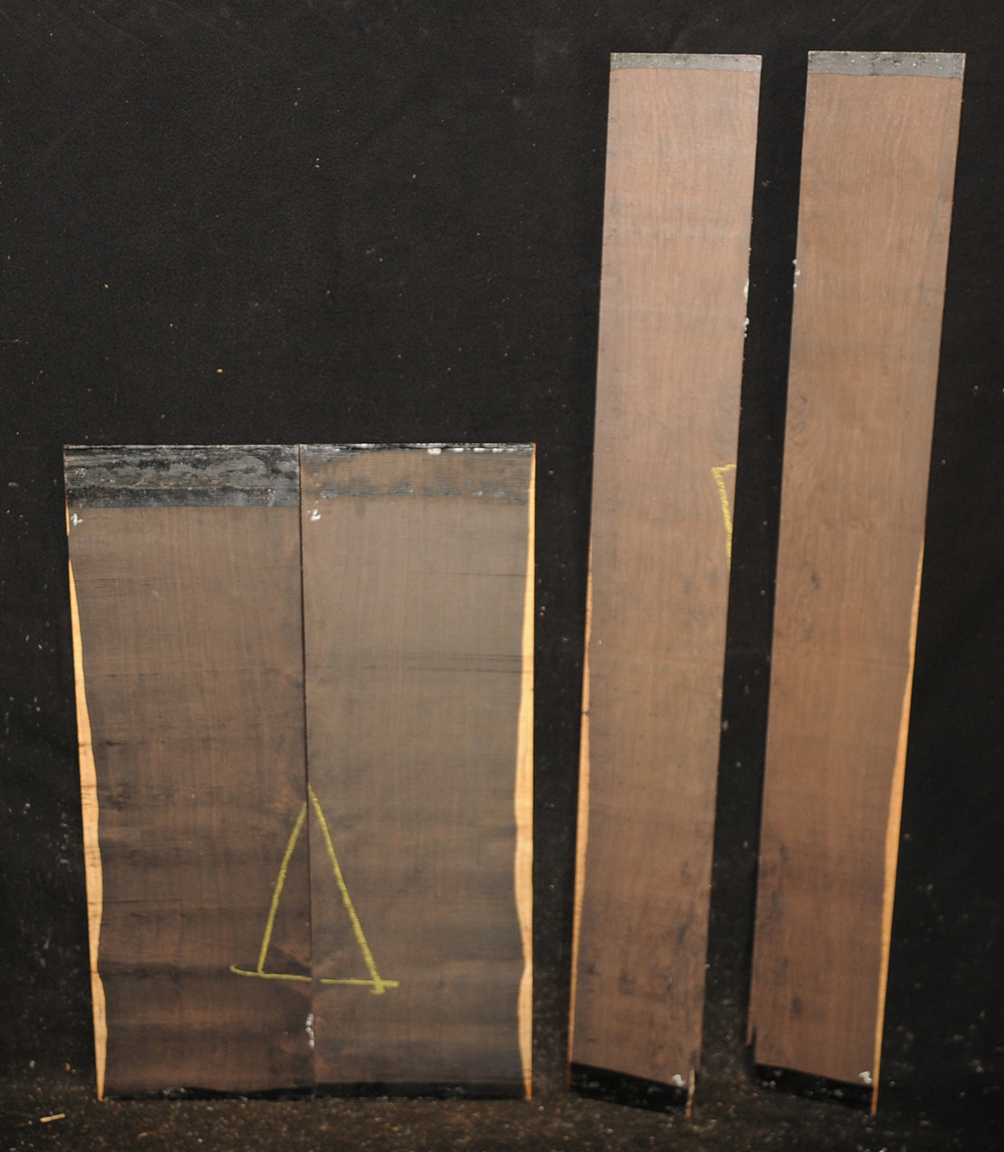 The backs of this set are what we call "plum pudding" figure, sort of a cross between quilted and curly, and quite rare in African Blackwood. The sides of this set are full of bird's-eyes. Normally we would want to match the sides and backs with similar figures but these are both so rare that we are not sure we would ever see their like in the sizes we would need to create a full set of matching figure. Please take a look at all the photos to see close ups of the afformentioned figuring.