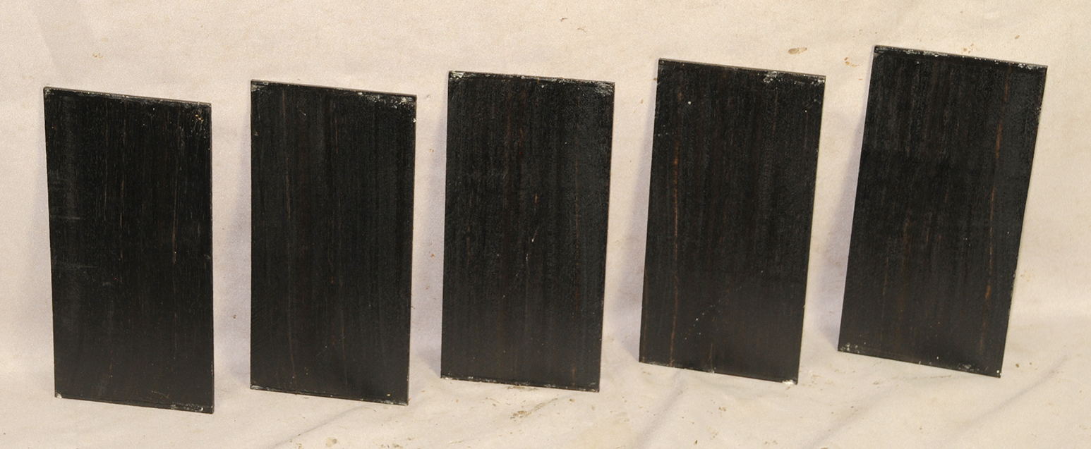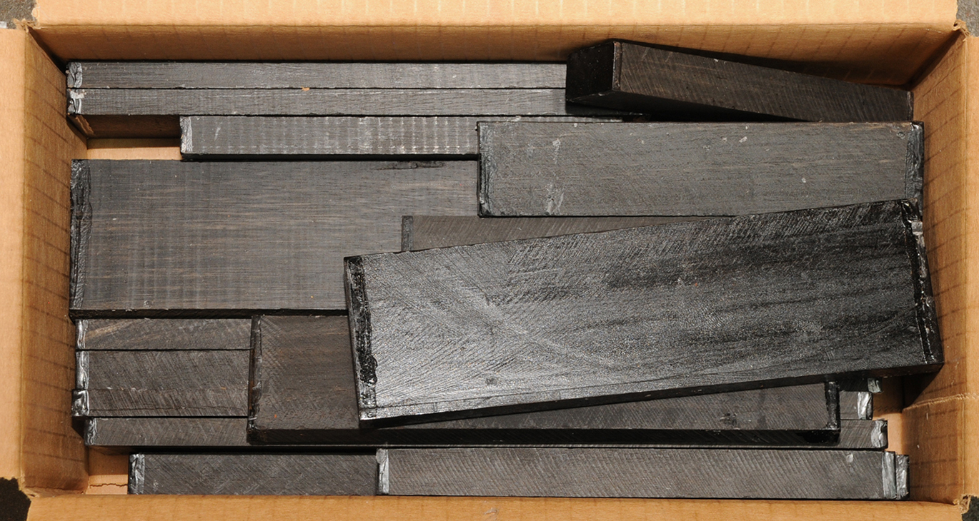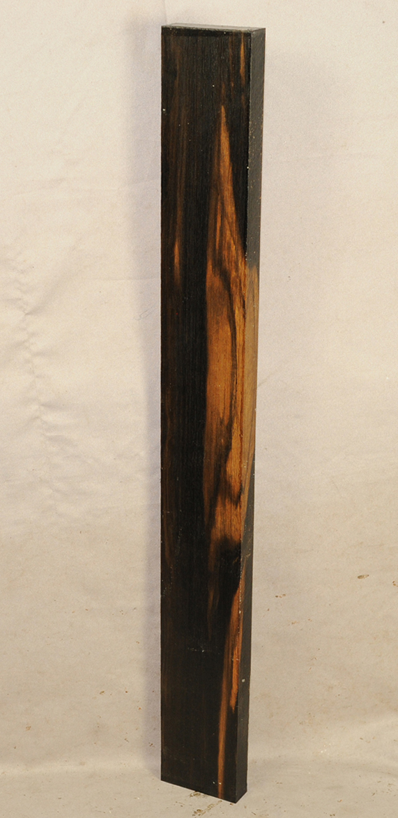 Sometimes called Gabon or Gaboon, this Ebony is sometimes jet black but oftentimes has grayish streaks that mostly disappear when finished or after the made object has been put into service. This Ebony has a marked resistance to checking that is characteristic of some of the Indian and Asian species. It has a wonderful texture and is easily carved, planed, turned, and milled. It is fairly fine-grained and takes a high polish. This Ebony usually originates in either Cameroon or Nigeria and the logs are rough hewn in the forest and oftentimes brought to the nearest road by human porters. With the disappearance of other species of black Ebony this species is fast becoming the Ebony of choice.