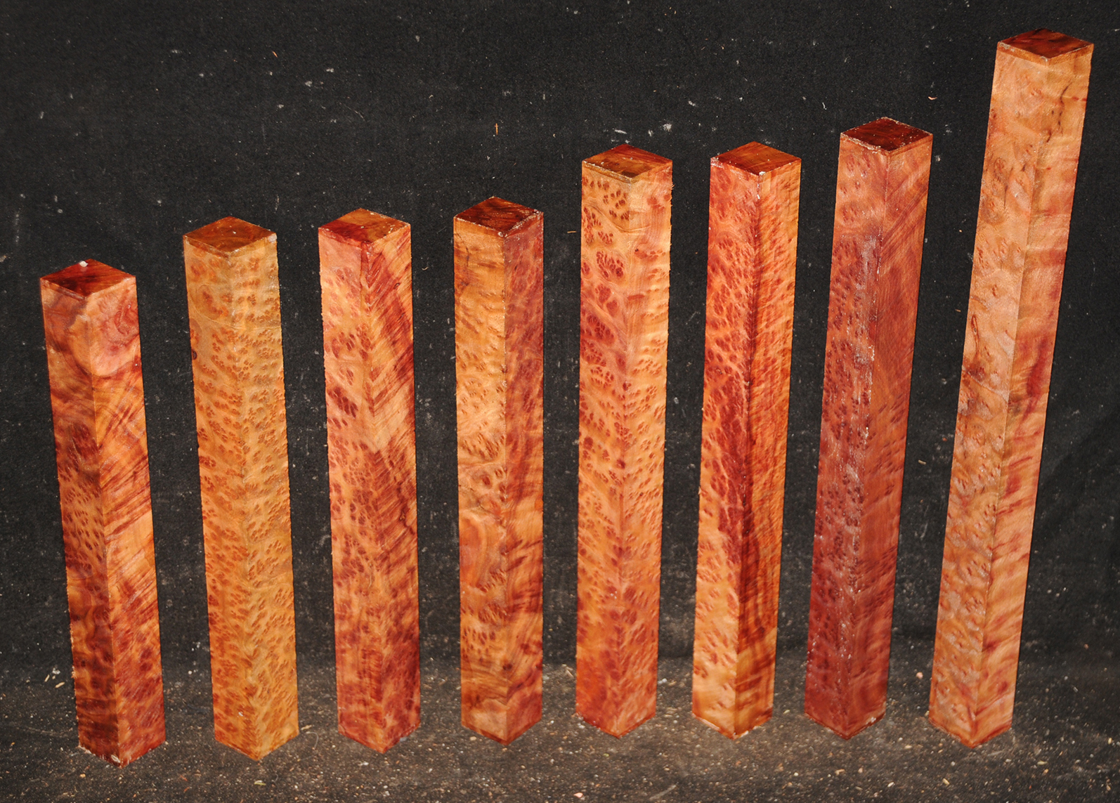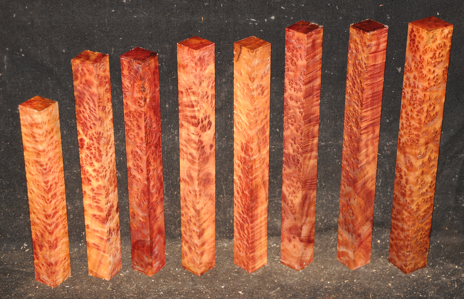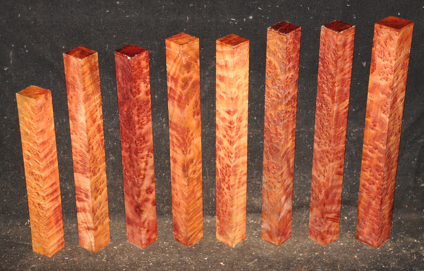 This rare burl is from S.E. Asia and is seldom seen on the world market. It is fine-grained and varies in color from a light reddish-brown to almost scarlet. It is easy to work and has a very pungent, spicy scent. For a burl it is remarkably stable. Green to partially air dried.