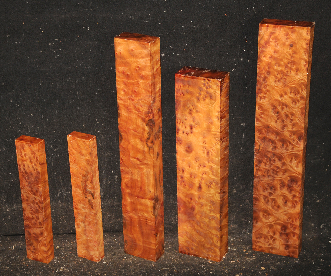 A tree found in Southern Oregon and Northern California with the best material coming from the San Joaquin Valley. Lighter in color than Eastern Black Walnut (Juglans regia) it is often found with curly and quilted figure. Burly stumps are also a valuable source of wood for veneers, gunstocks, and wood turning blanks.