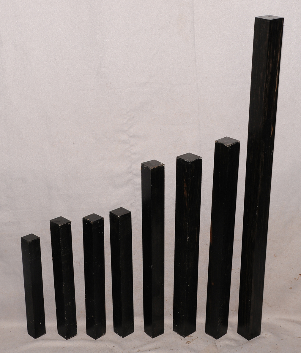 The heartwood is purplish to brownish-black with dark gray streaks giving an overall impression of being black. Lustrous with an attractive inner chatoyance. Very hard, heavy, close-grained, and virtually free from pores. Slightly oily to the touch. The sapwood is straw colored to a bright yellow and can be as wide as 2". African Blackwood can weigh as much as 85 lbs per cubic foot. It is used for marquetry, inlays, knife handles, game calls, pistol grips, pool cue butts, chess pieces, jewelry, and other precious arts and crafts. But its main use is in turning, and it claims the title of the finest of turnery woods, well known as the standard by which other turnery woods are judged. Long a favorite of ornamental turners, the nature of the wood allows very fine detail with sharp cutters, leaving a beautiful, burnished surface. Its stability, oily nature, resistance to moisture, and lovely finishing qualities make it superior to other timbers. These are best quality squares. Rare.