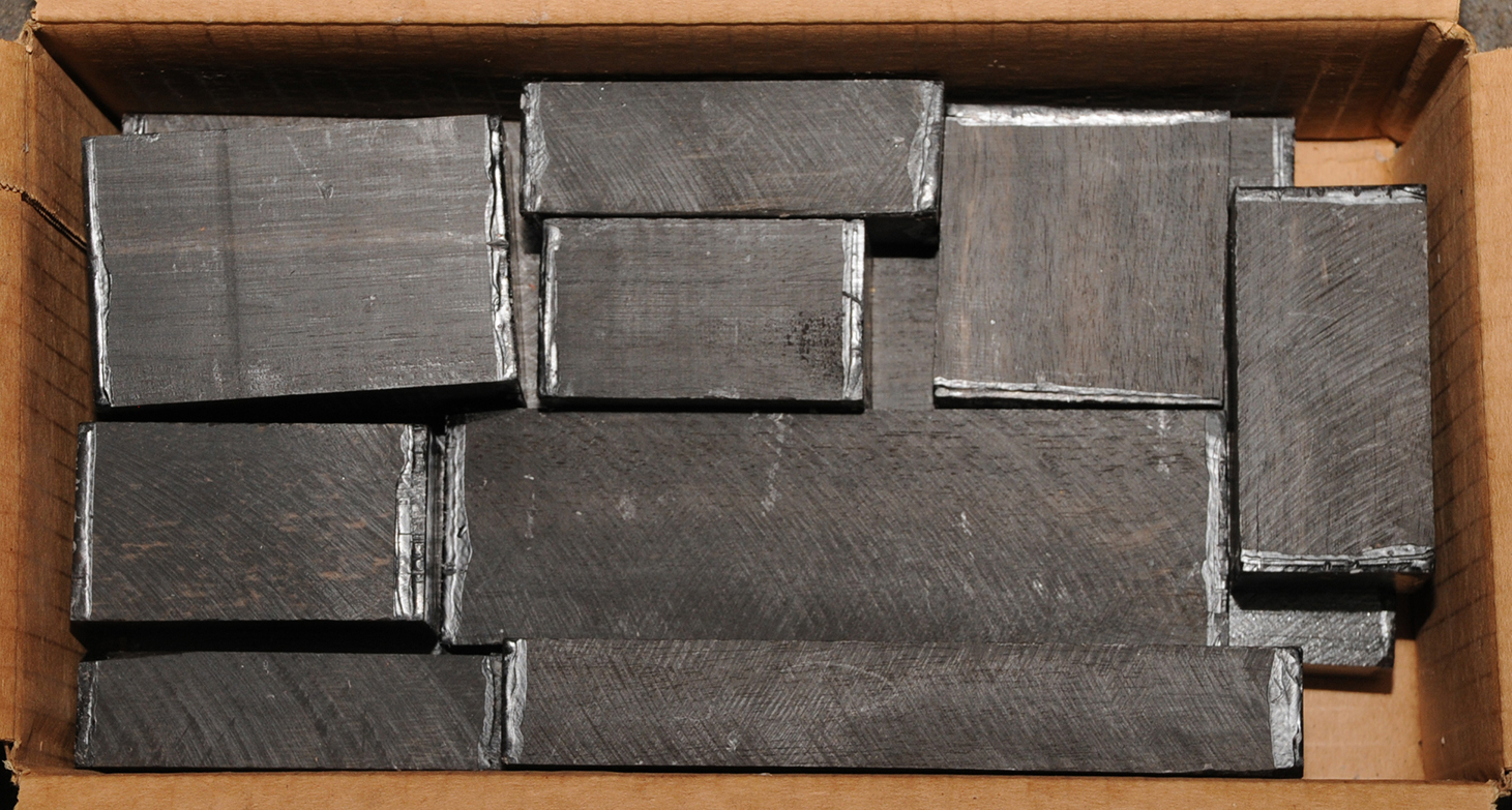 Sometimes called Gabon or Gaboon, this Ebony is sometimes jet black but oftentimes has grayish streaks that mostly disappear when finished or after the made object has been put into service. This Ebony has a marked resistance to checking that is characteristic of some of the Indian and Asian species. It has a wonderful texture and is easily carved, planed, turned, and milled. It is fairly fine-grained and takes a high polish. This Ebony usually originates in either Cameroon or Nigeria and the logs are rough hewn in the forest and oftentimes brought to the nearest road by human porters. With the disappearance of other species of black Ebony this species is fast becoming the Ebony of choice.