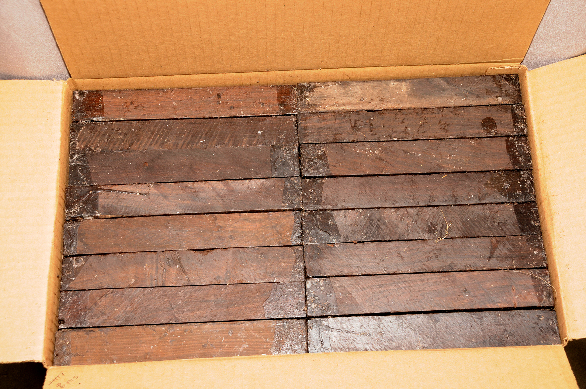 This box contains 96 beautiful Blackwood squares. We bought these as #2's but they are quite nice with few defects. Would make great tool handles, knife scales, finials, etc.
